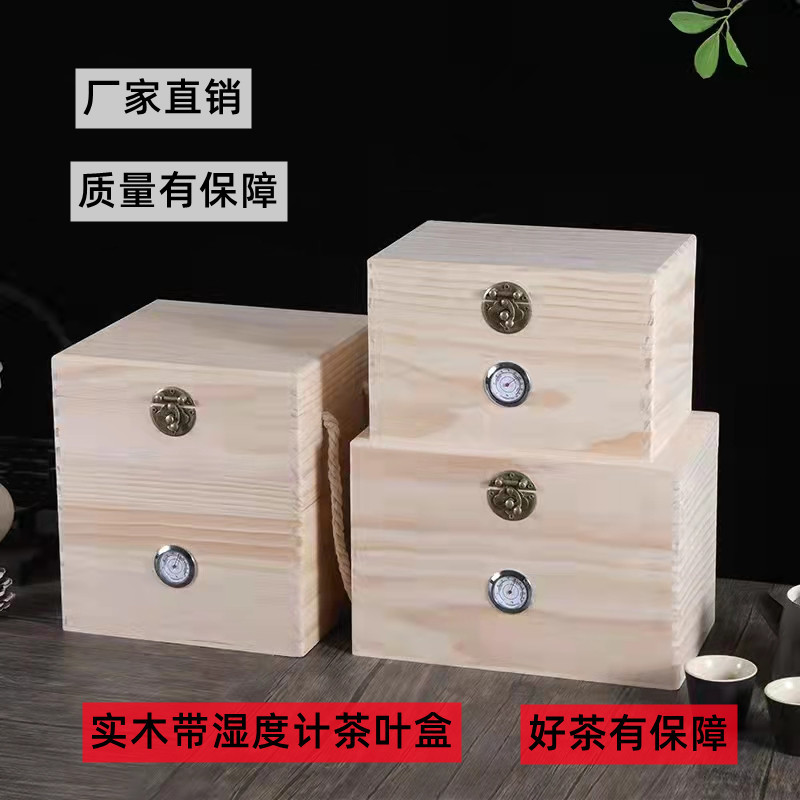 湿度計貯茶木箱木製福鼎白茶包装箱新型茶葉木箱プーアル茶箱メーカー直販