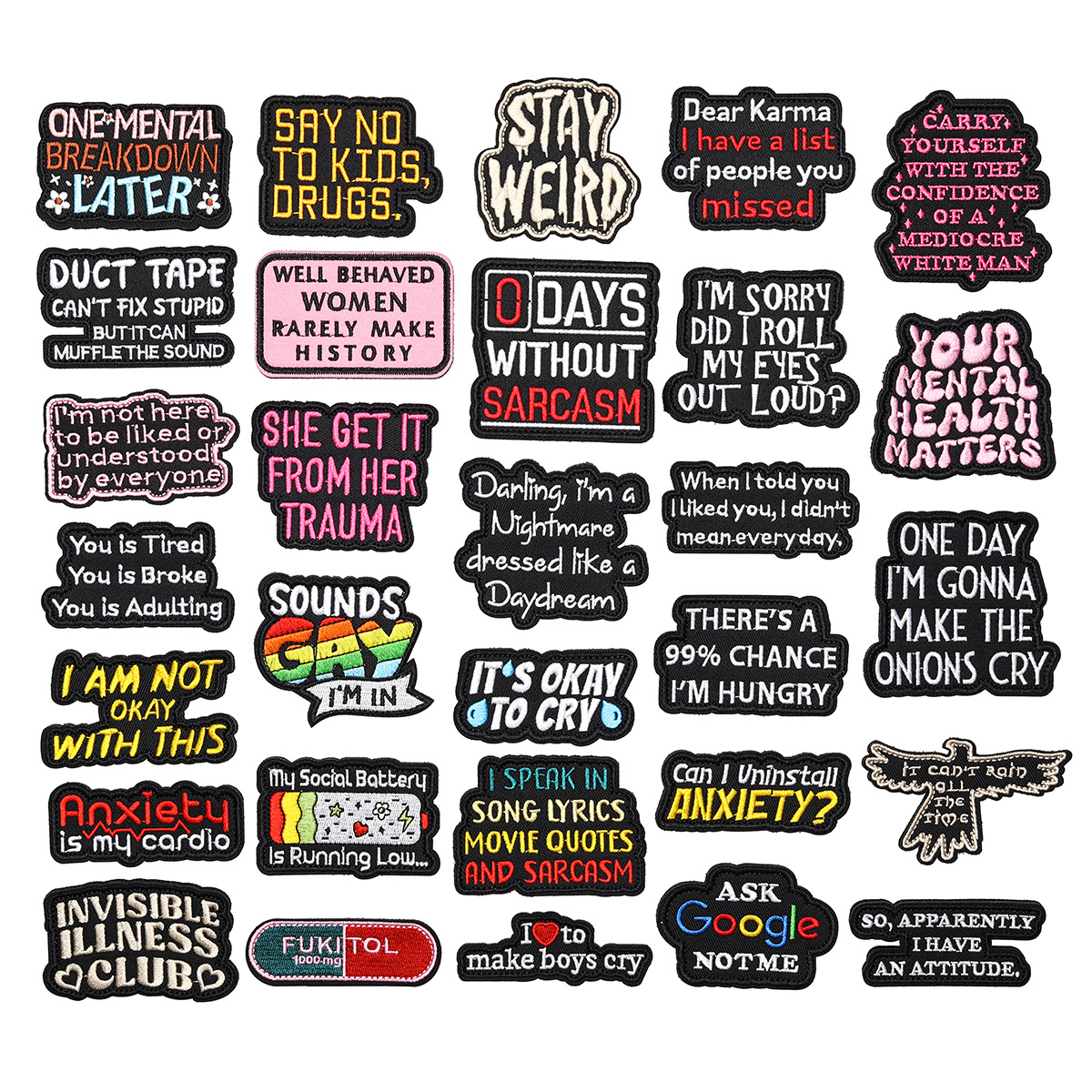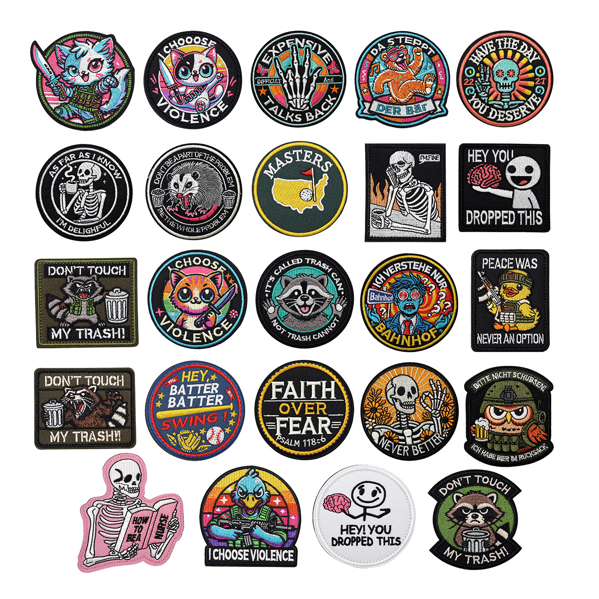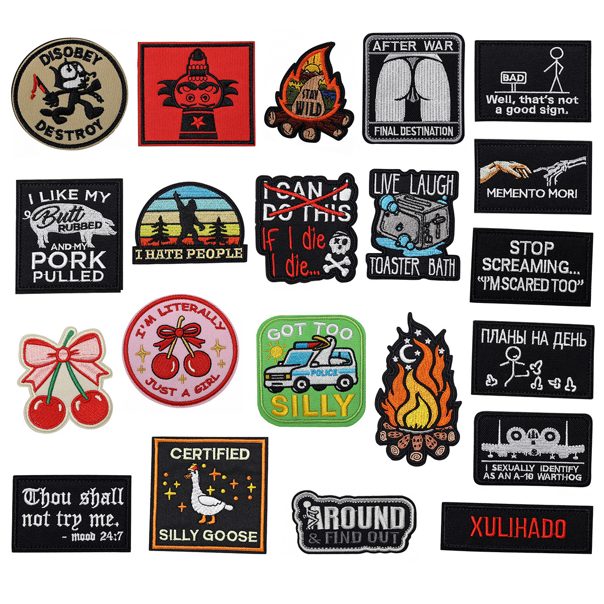 クロスボーダーベルクロループフック刺繍バッジ漫画楽しいユーモア皮肉なスタイル布ステッカーセット単品