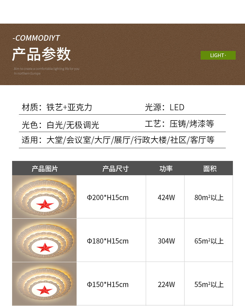 五角星天井灯大会ホール党灯事務会議室人民円形五星大サイズ灯具