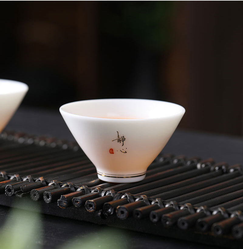 羊脂玉磁器日本風工夫ティーカップ陶磁器茶碗家庭用お茶主人専用ティーカップ