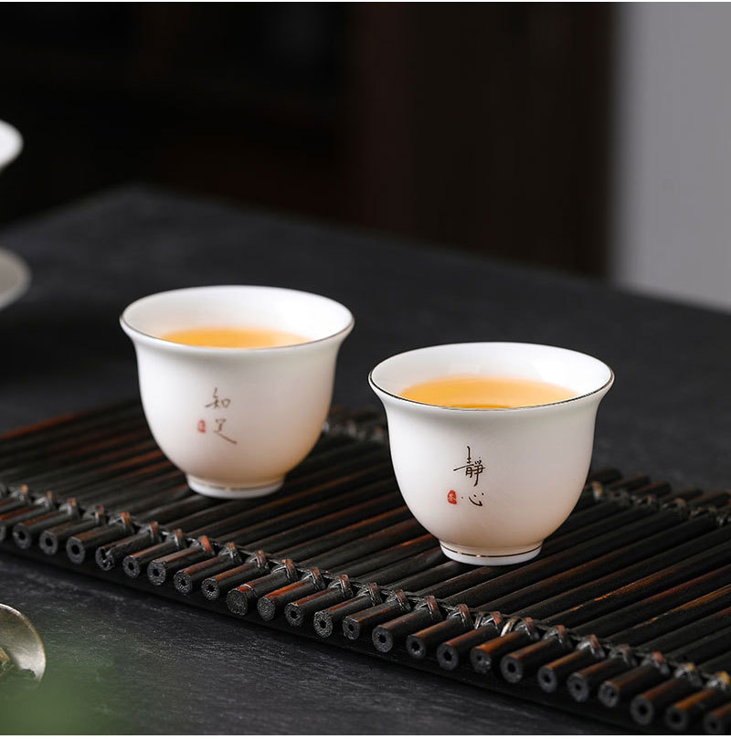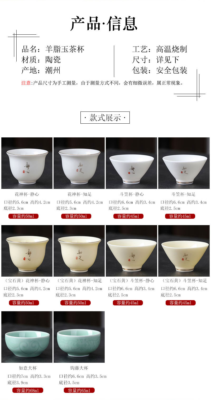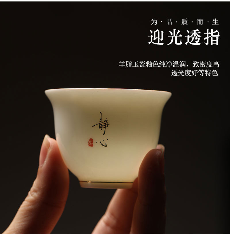 カンフーティーカップ羊脂玉白磁闘笠杯個人陶磁器主人茶杯品茗杯家庭用お茶碗茶器