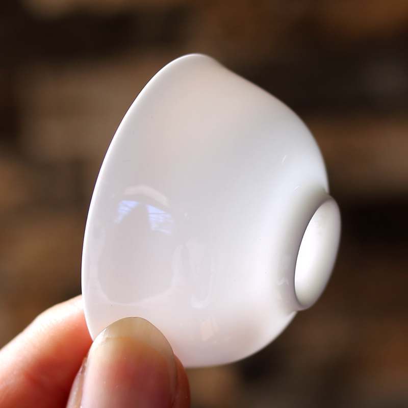 薄胎氷種玉磁器闘笠杯白磁プーアル杯陶磁器主人杯茶杯家庭用個人杯工夫茶具