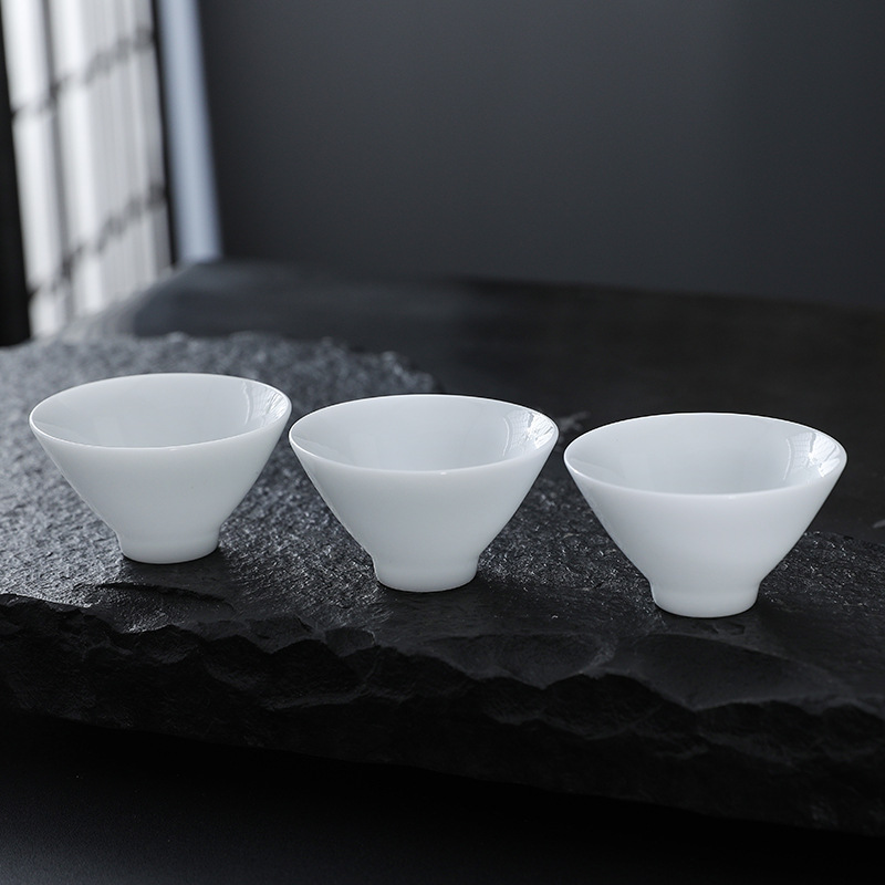 羊脂玉瓷斗笠杯家用陶瓷功夫茶具白瓷喝茶小茶杯单杯品茗杯小茶盅
