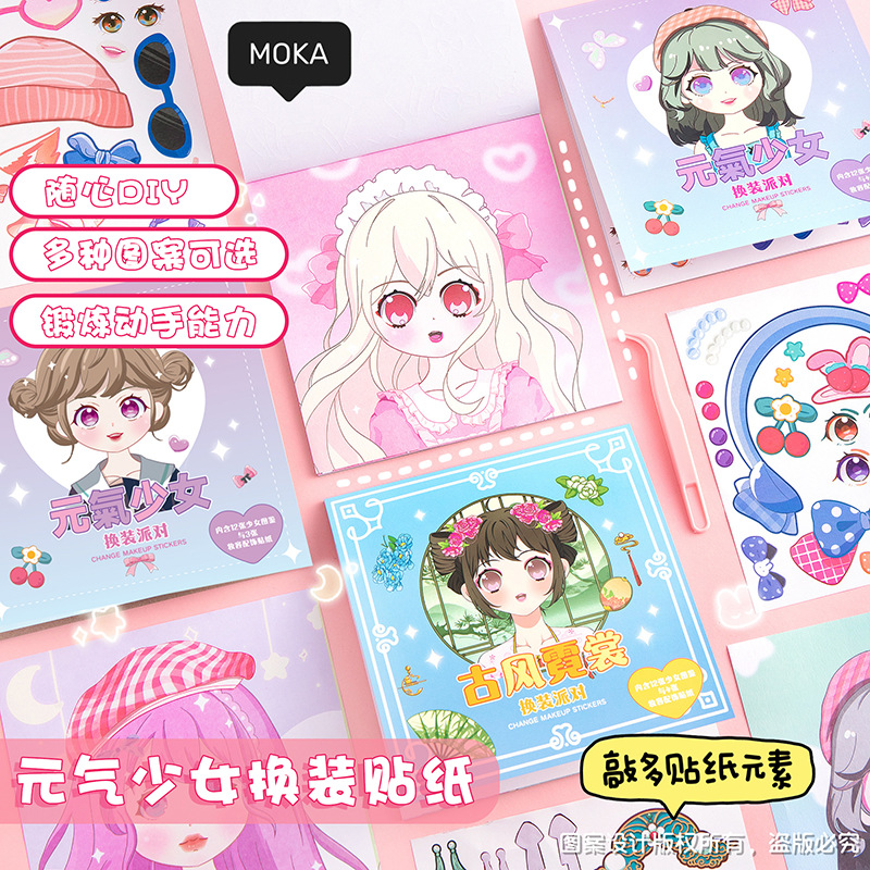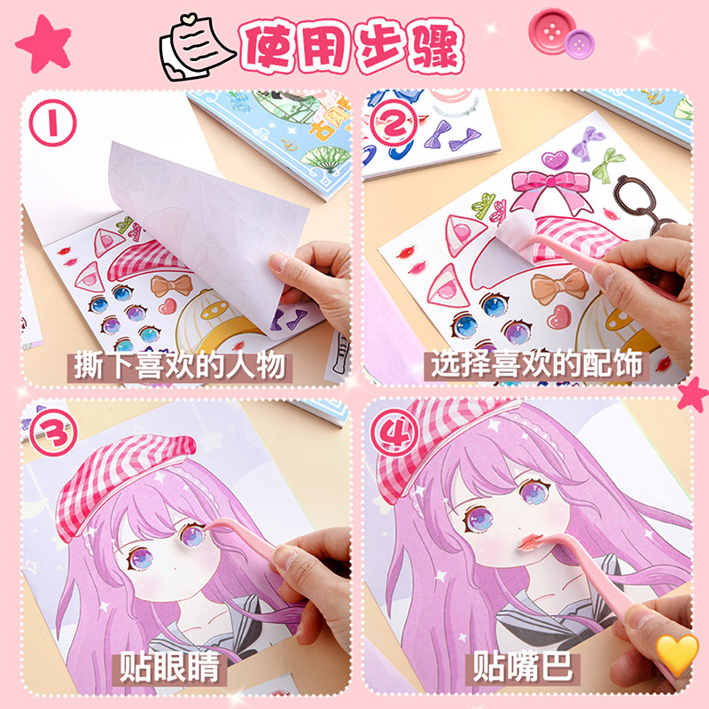 クリエイティブな着せ替えシールかわいい女の子知育玩具子供幼稚園プレゼント小学生diy手作りシール
