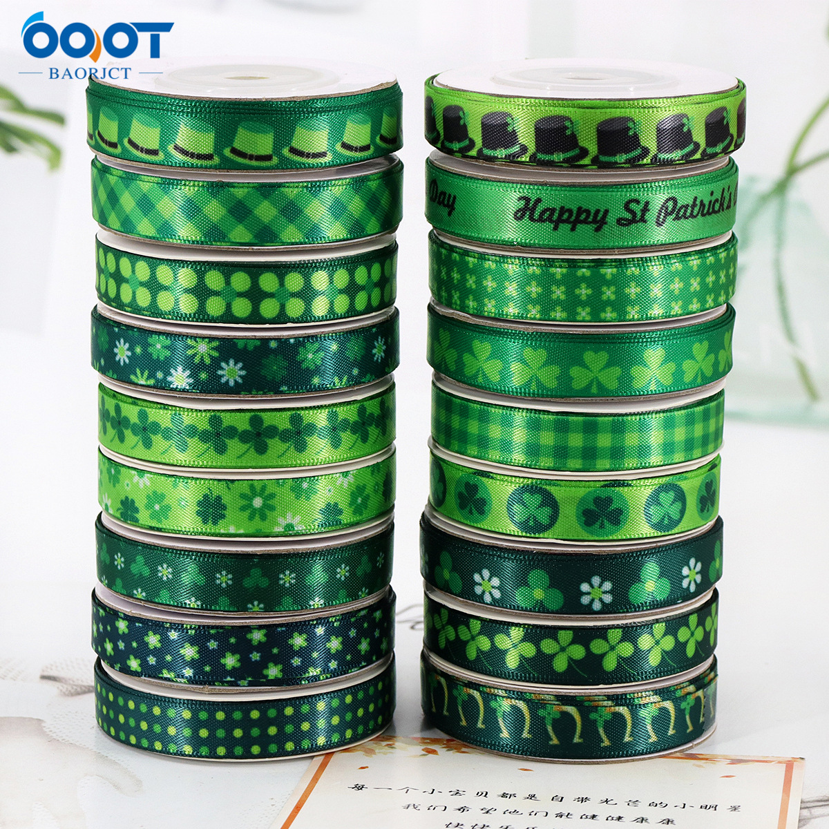 四葉草リボン聖パトリックの日リボンプリントリボンアイルランドの日装飾グリーンリボン