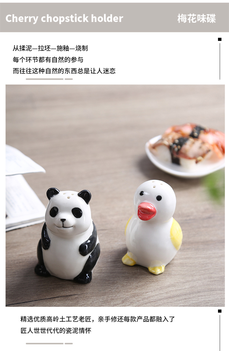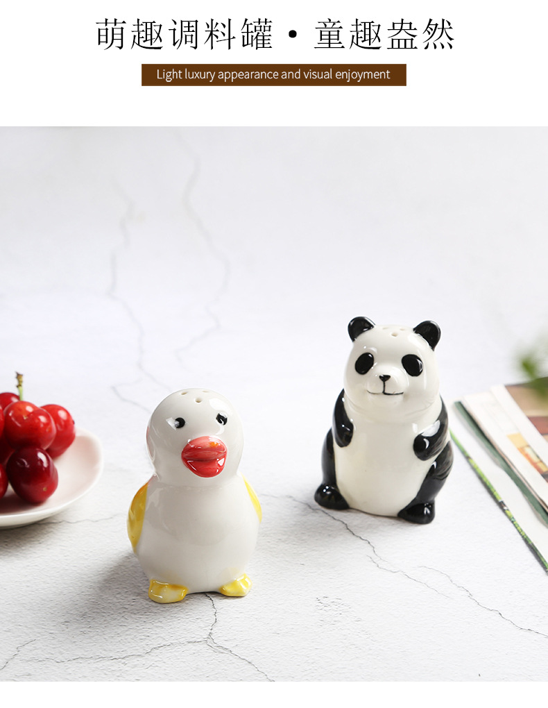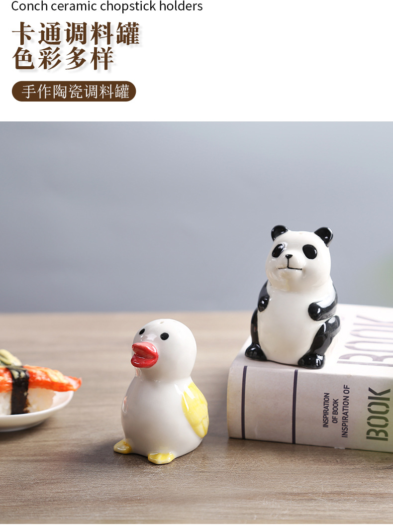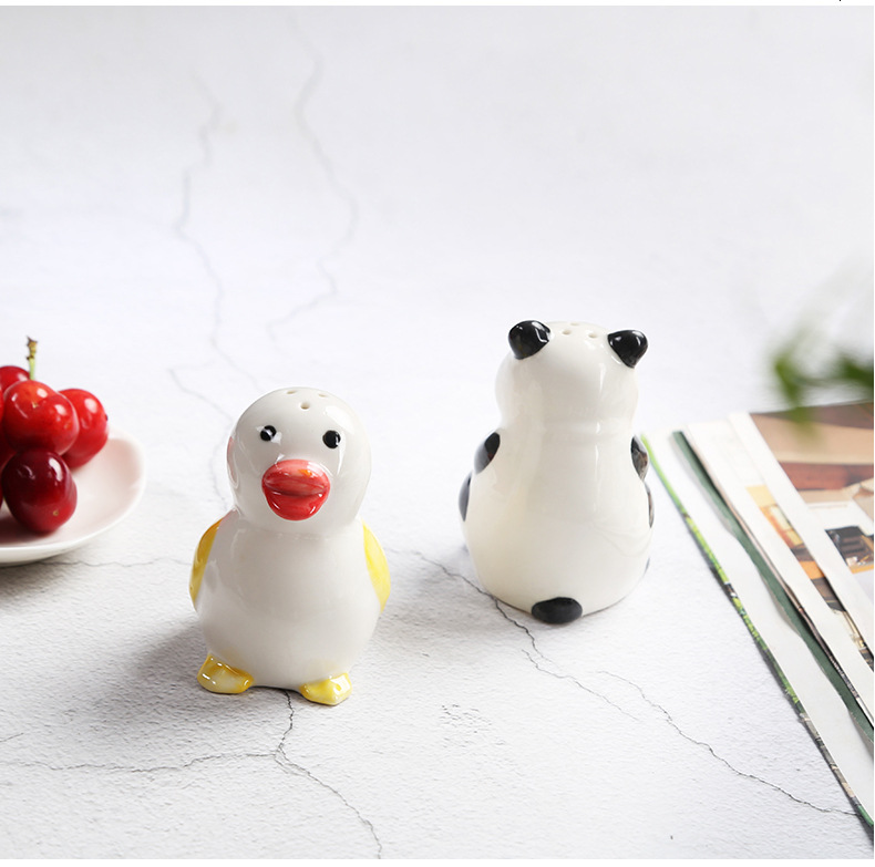 陶磁器の胡椒の瓶の輸出の手作りの彩色の陶磁器のかわいいパンダのアヒルの型の胡椒の瓶の工芸の置物の贈り物
