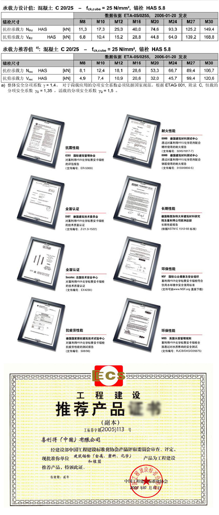 ドイツ原装喜化学アンカー化繊8m10m12m16m20m24薬剤ステンレス膨張アンカー