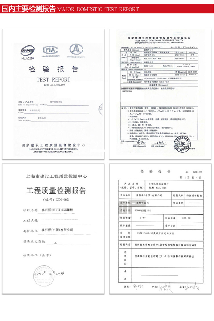 ヒルティ純正HVU2化学ボルトM8M10M12M16M20M24化学アンカーボルト卸売