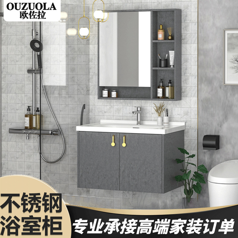 ステンレスの浴室の戸棚の軽い贅沢なトイレの洗面台の洗面器の鏡の洗面器の洗面器の一体の収納棚の直売