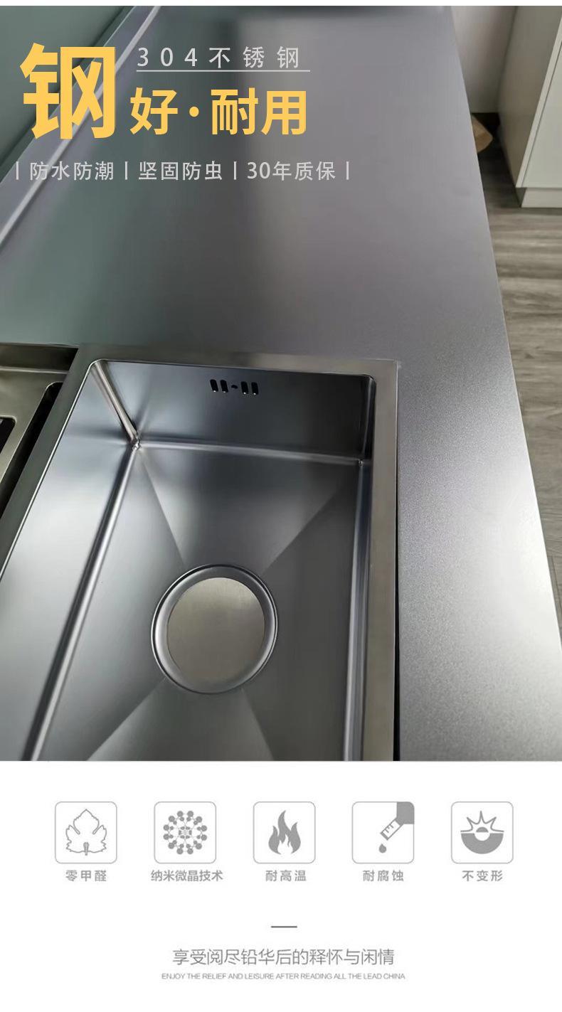 冰裂纹不锈钢耐刮花板雪晶喷砂镀铬304台面简约轻奢一体水槽岛台