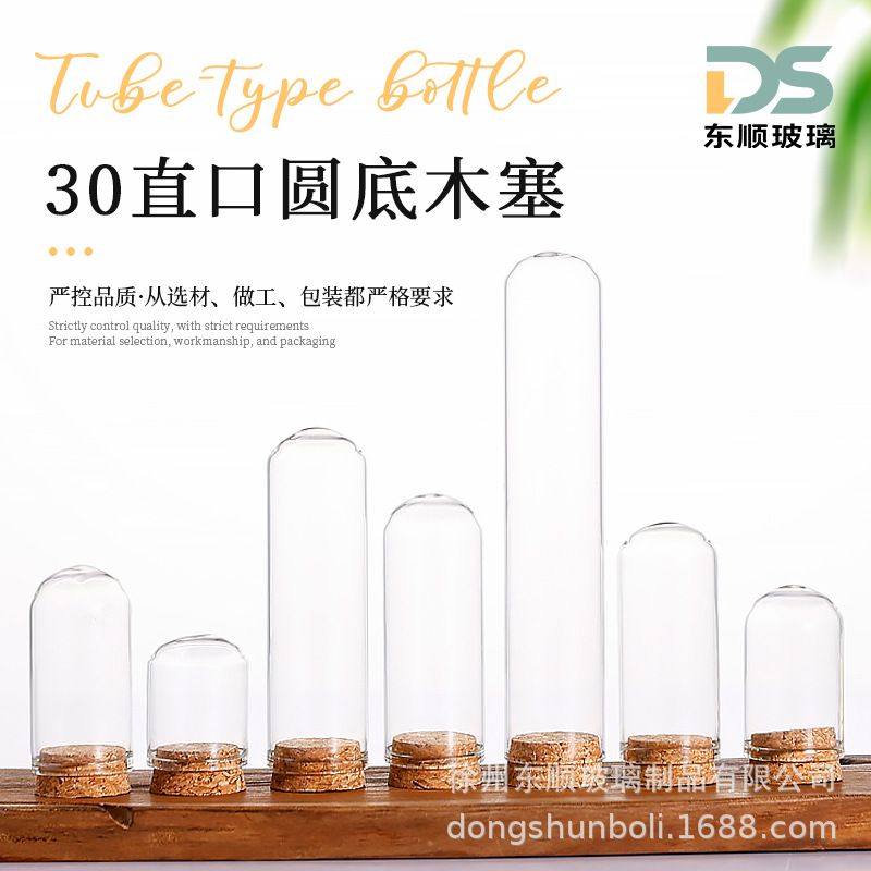 卸売り30mm直口丸底管製瓶ガラス製品竹蓋木栓直筒ホウ素シリコン許念瓶漂流瓶
