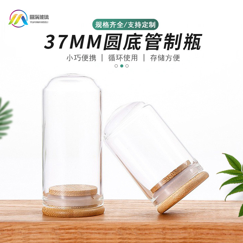 37mm圆底直口管制瓶竹木盖玻璃瓶花茶分装瓶密封漂流许愿瓶糖果瓶