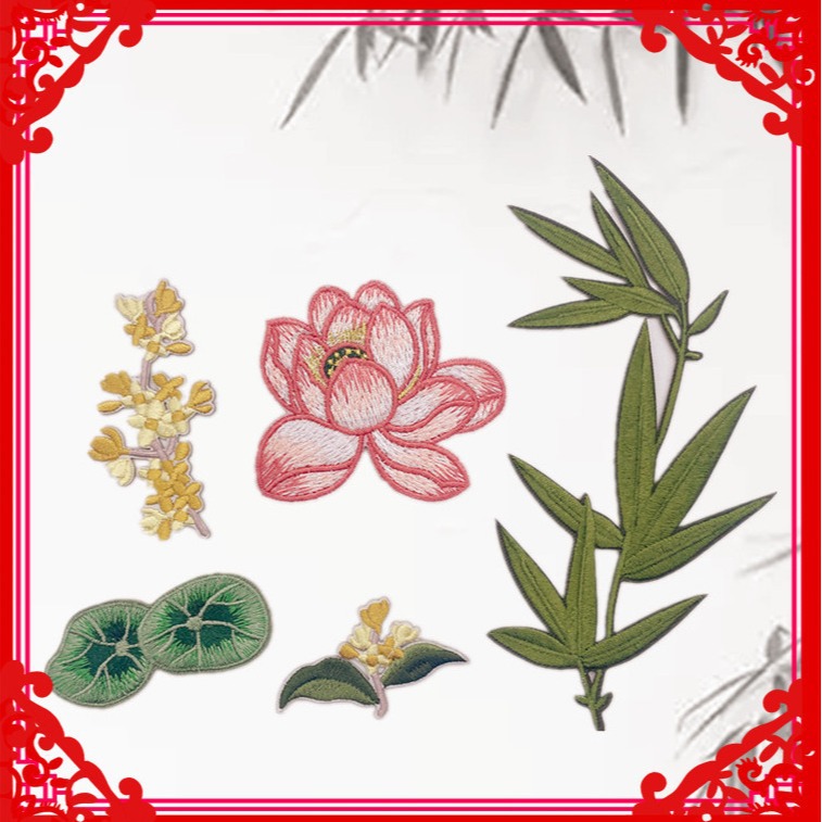 Nayang ハイエンド竹布パッチ衣類パッチ花刺繍韓服チャイナ中国刺繍パッチ自己粘着