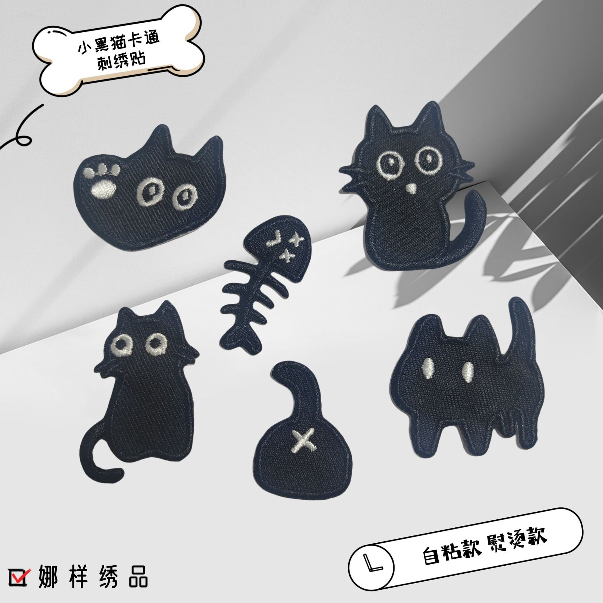 娜様黒猫刺繍服破れ穴貼り夏半袖装飾布貼りかわいいアニメ刺繍自粘アイロン貼り