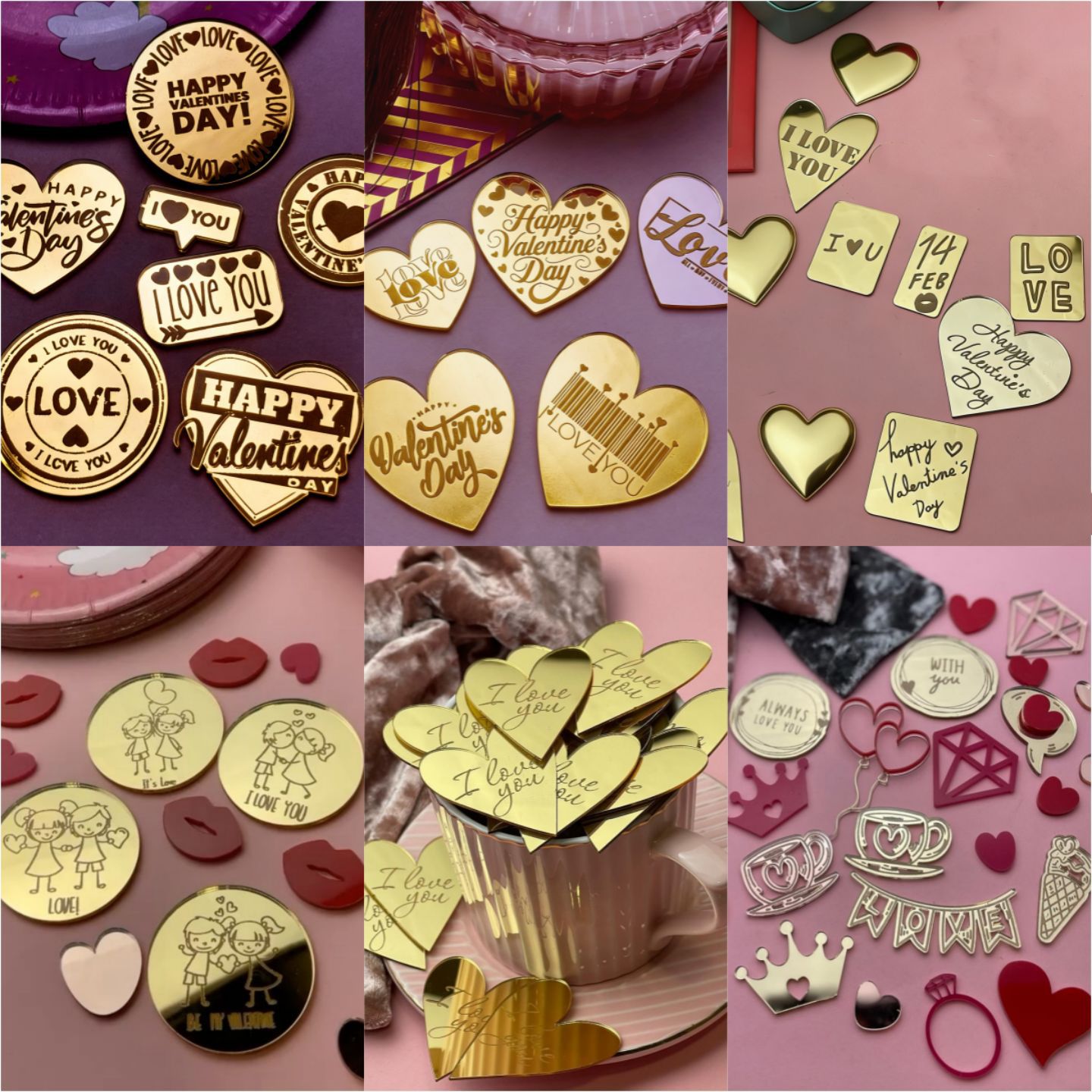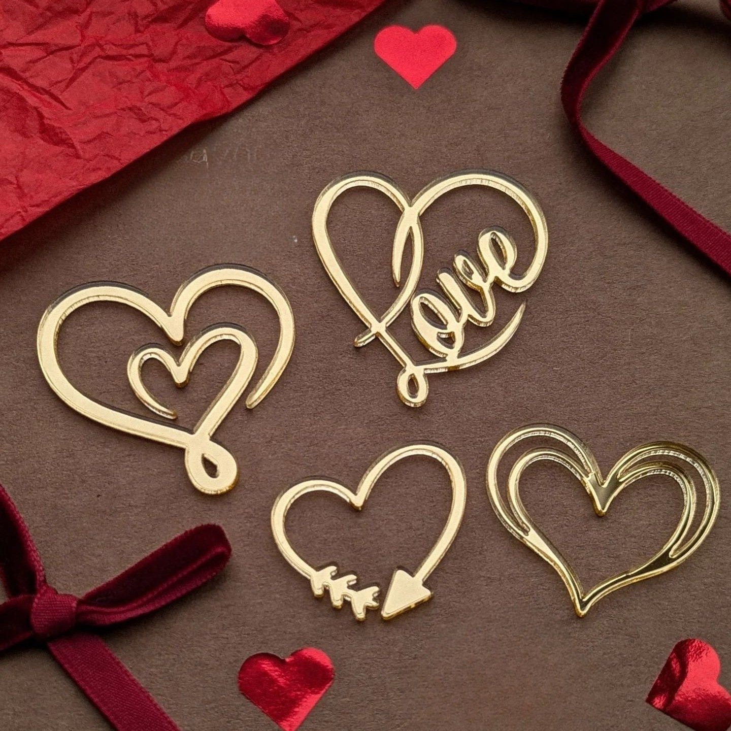 国境を越えたインスタ風ハートアクリルケーキ飾り バレンタインデー ハートアクリルケーキデコレーション サイドデコレーション