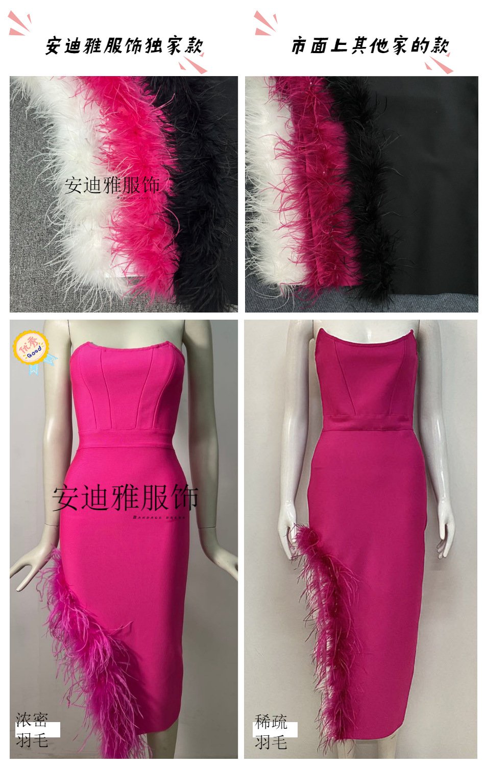 安迪雅服饰采用高端绷带面料以及完整工艺。