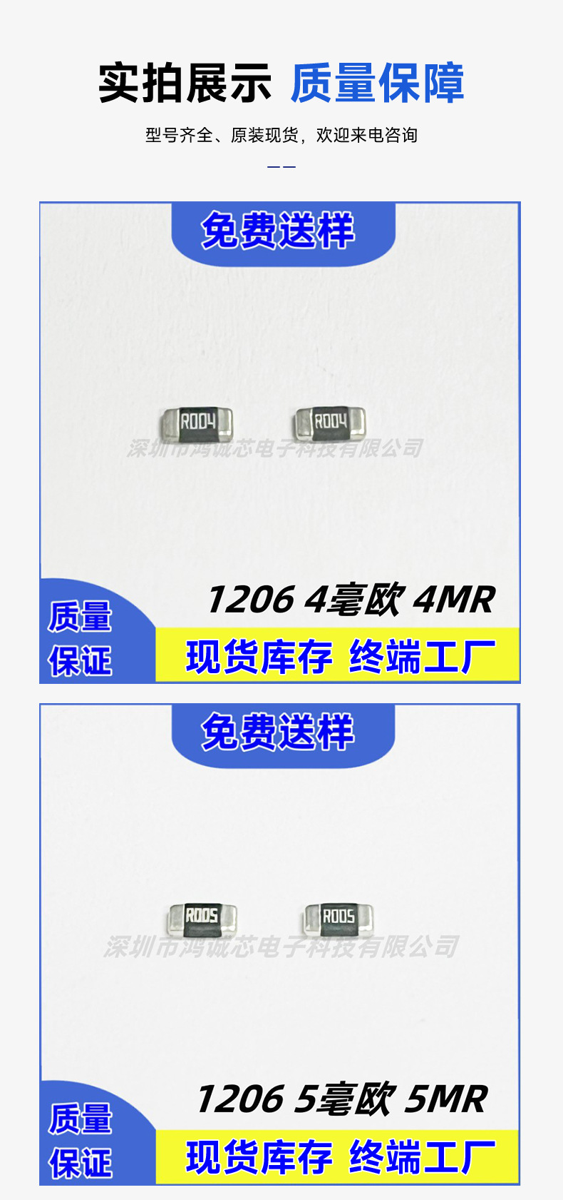 名目抵抗値 1206 R001/0.001R 1W,1206 R002/0.002R 1W,1206 R003/0.003R 1W,1206 R004/0.004R 1W,1206 R005/0.005R 1W,その他の規格はカスタマーサービスに連絡します。