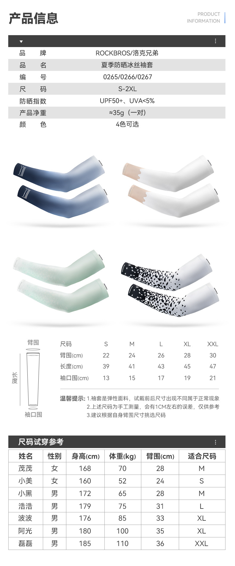ロック兄弟日焼け止め袖カバー氷爽袖男女屋外運転氷糸手袖保護アームカバーサイクリング袖夏