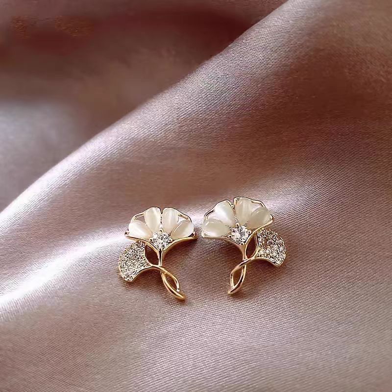 S925銀針の精巧な小さい猫の目の石の銀杏の葉のピアスのイヤリングのファッションの清新な日常の通勤の百合の耳飾り
