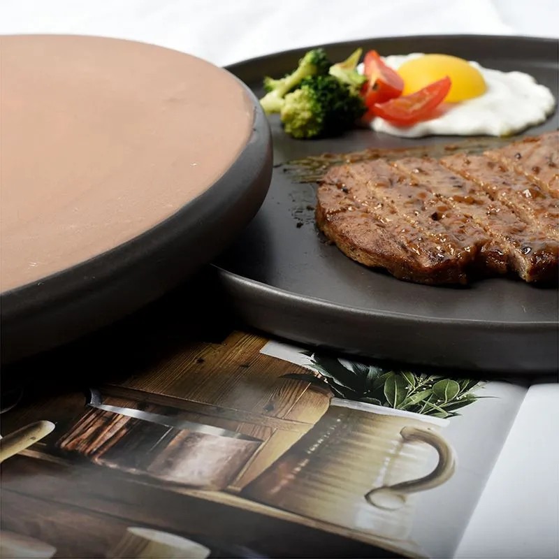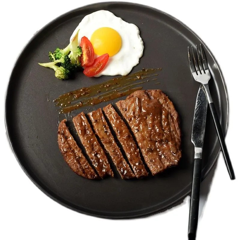 カラー つや消しの黒いステーキプレート,マットブラックスレッドサイドステーキ皿