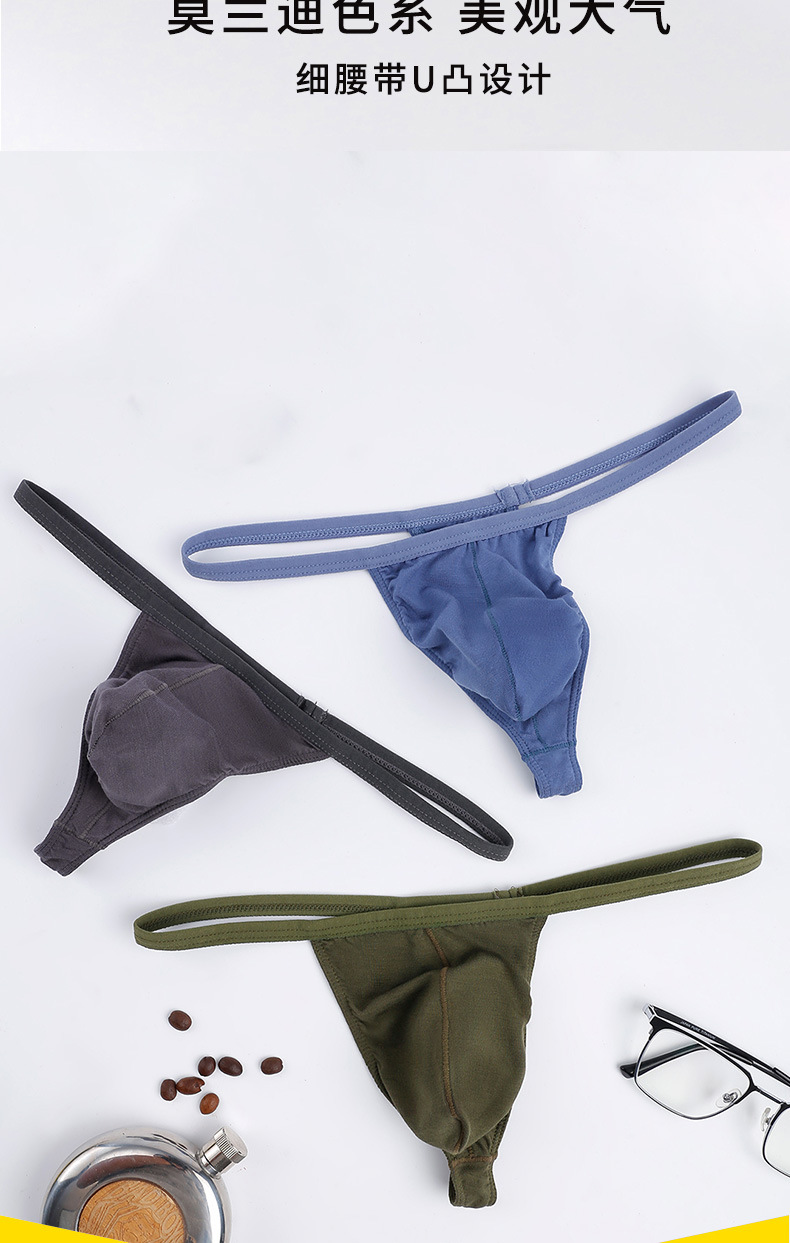 TEMU热销男士个性波纹内裤低腰漏臀细带裤舒适透气丁裤欧码批发