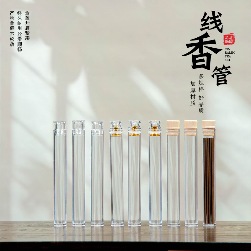 新しいプラスチック香管家庭用線香分装筒アクリル透明試用寝たきり香筒沈檀香螺旋蓋