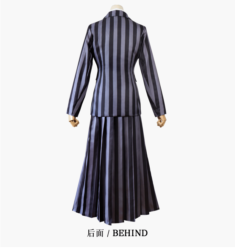 跨境万圣节亚当斯一家星期三cos条纹服装小狼女cosplay礼服表演服
