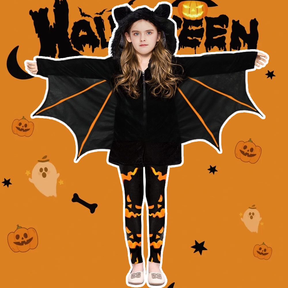 2023新しいハロウィーン子供服コウモリマントキャノピー女の子服パーティーコスチュームコスチューム