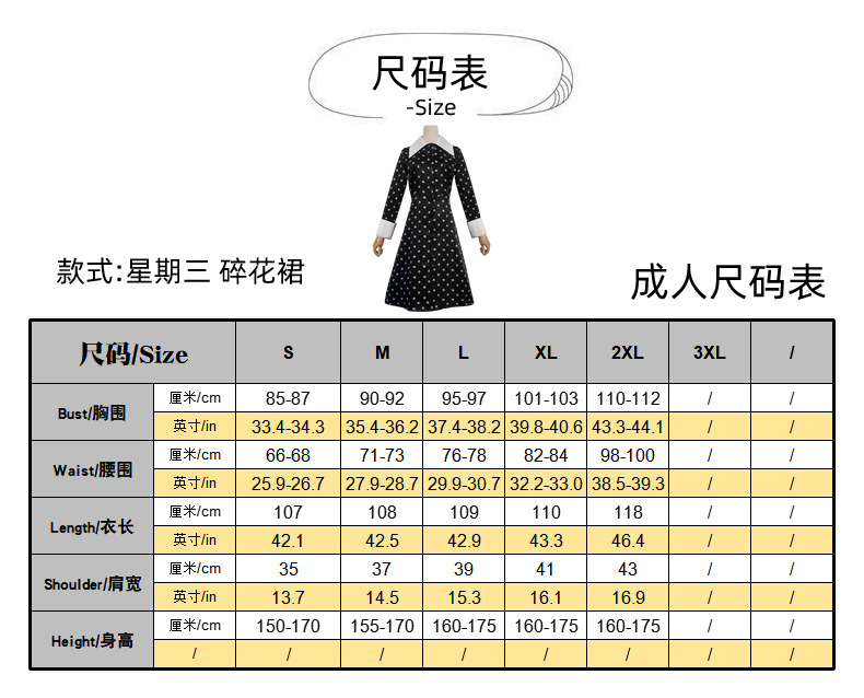 水曜日の制服、,水曜日ガーゼスカート+ベルト+リボン,水曜日の花柄スカートはヨーロッパサイズでは大きすぎます,水曜日の長袖黒スカート、ヨーロッパサイズは大きすぎます,水曜日前髪ウィッグ