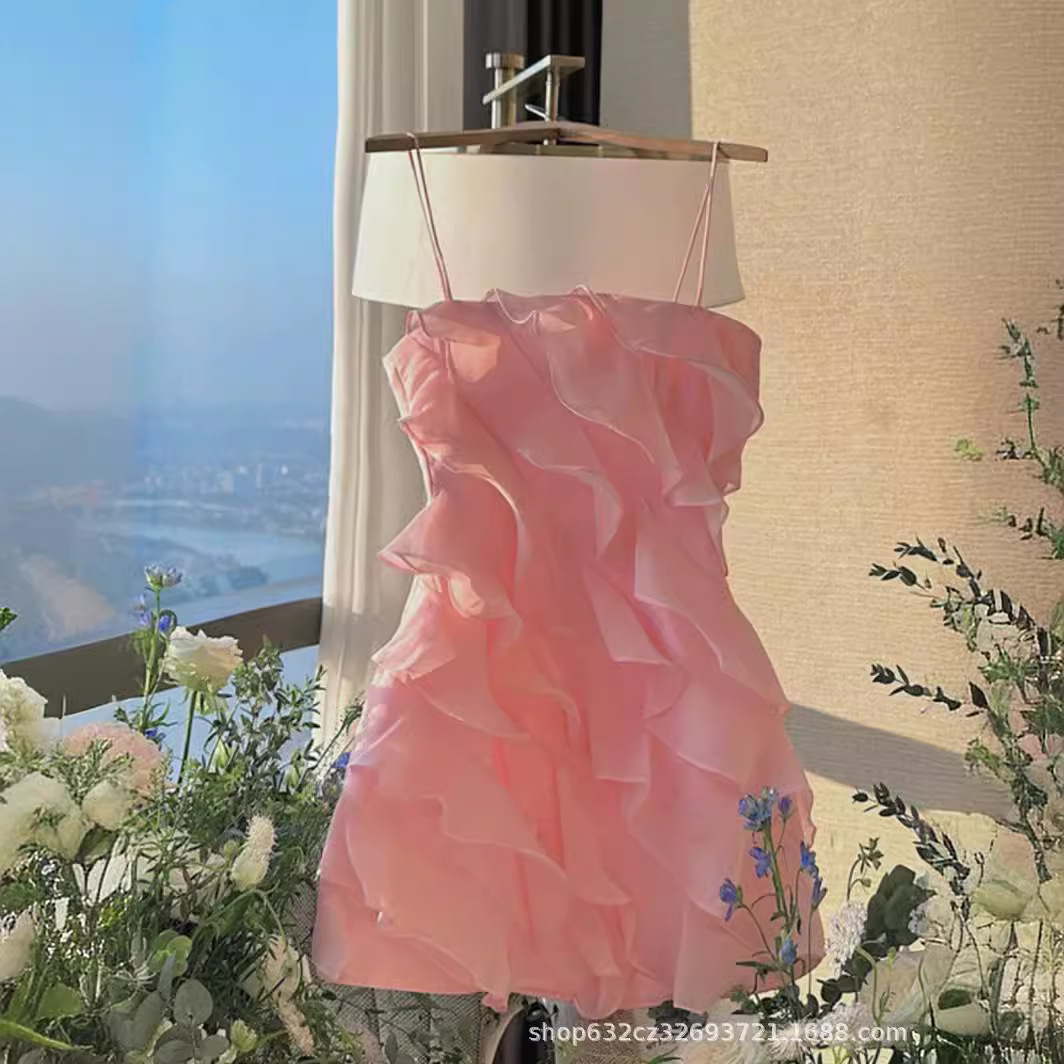フランス初恋風甘美ストラップワンピース女性夏高級感軽贅沢レース海辺休暇超仙スカート