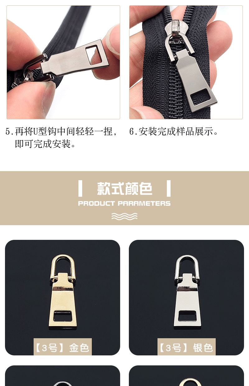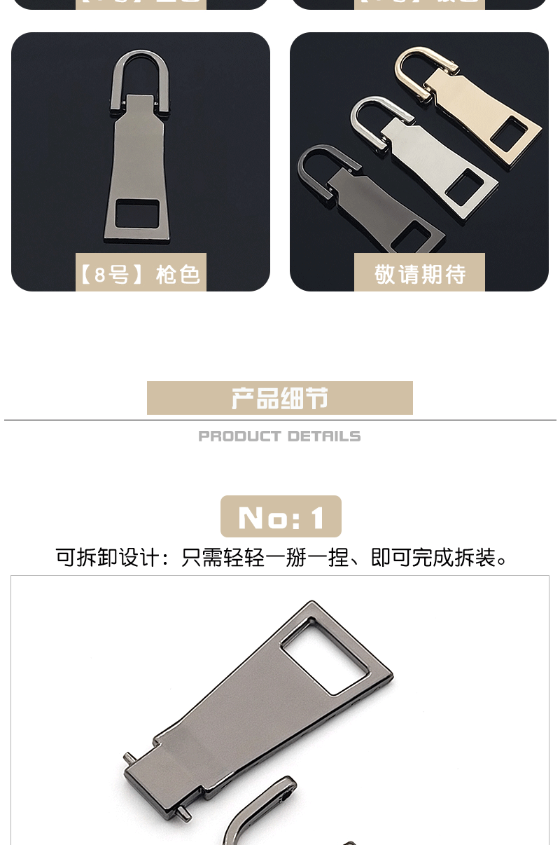 现货供应304不锈钢拉片拉牌高档耐磨万能拉链头3#5号箱包服饰配件