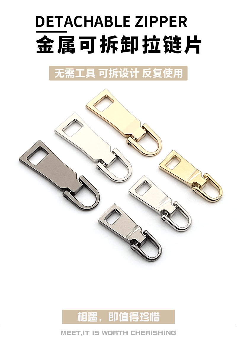 金属のファスナーの頭の引っ張り板は取り外し可能です。靴の服を包んでロックします。