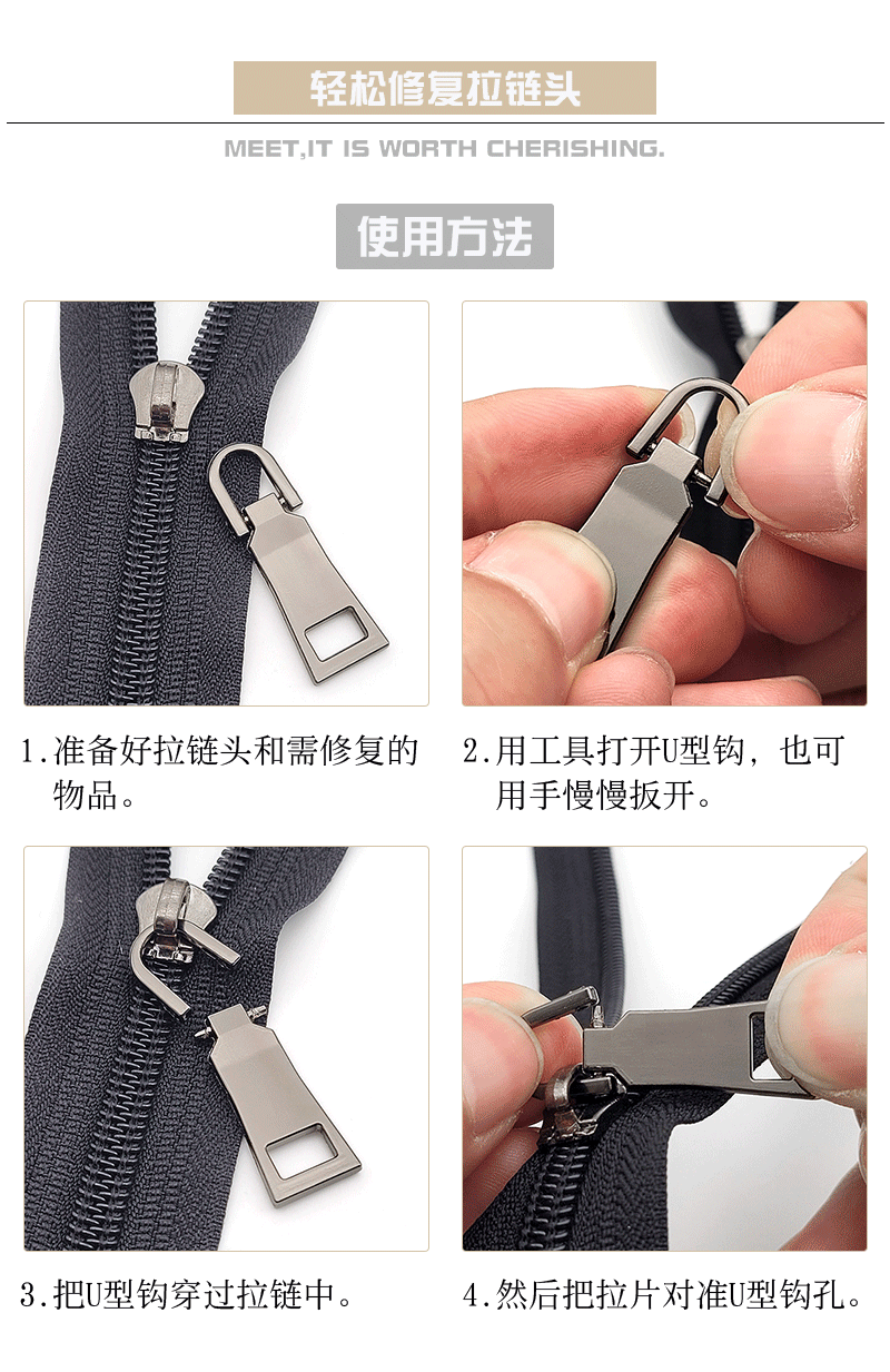 可動ジッパー部品、金属製ジッパー部品、荷物修理用ジッパー部品、衣類付属品、取り外し可能なジッパー部品