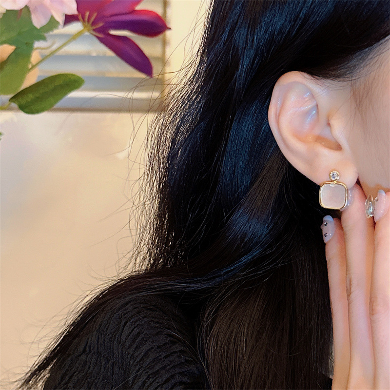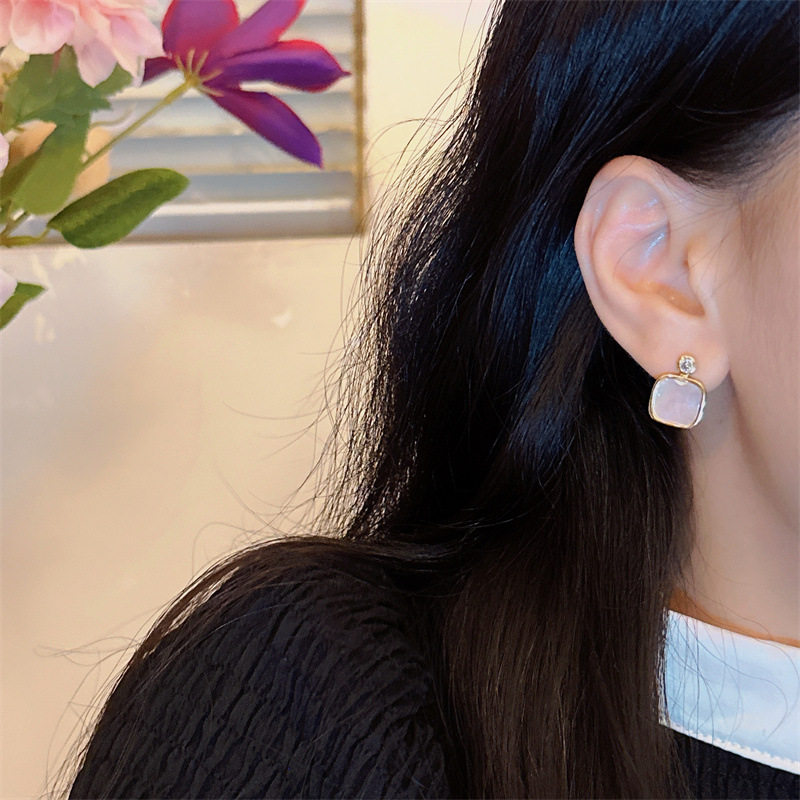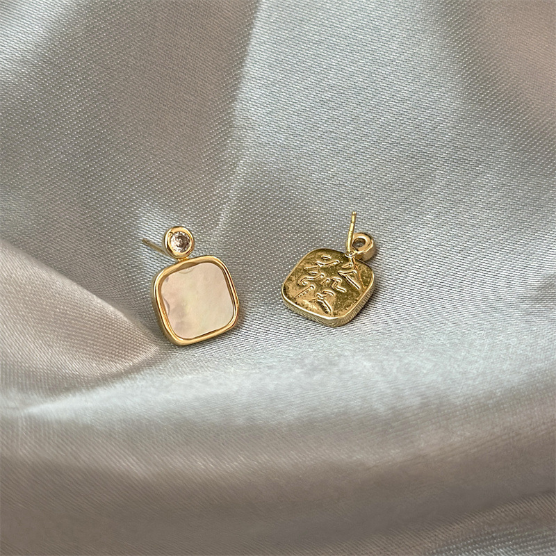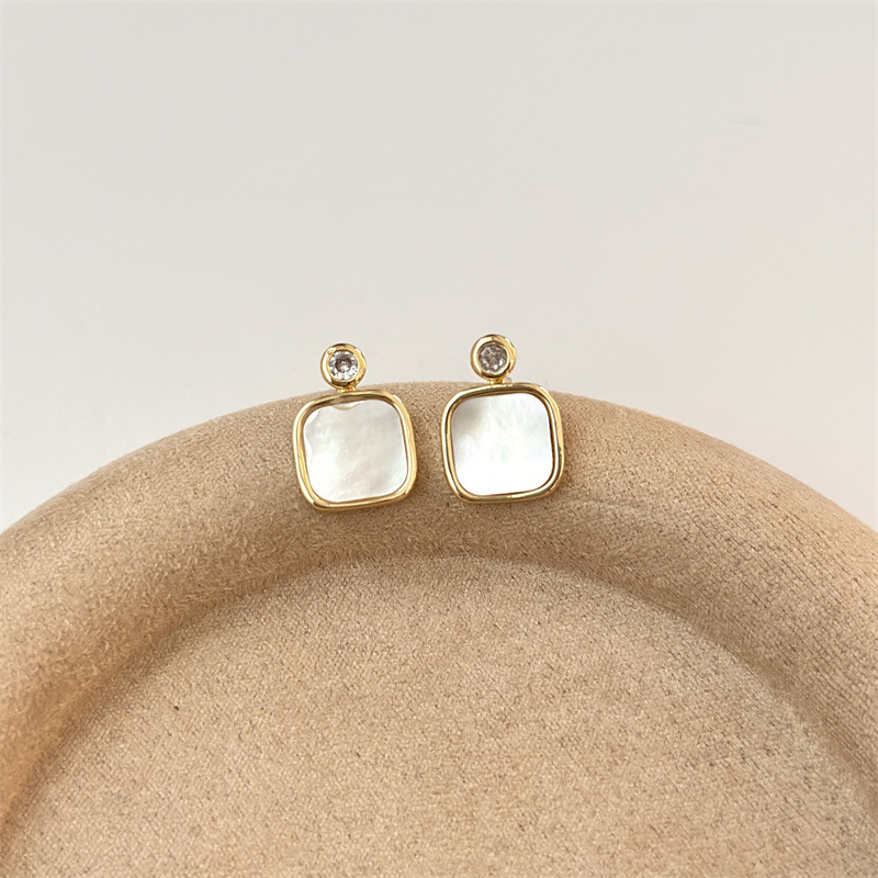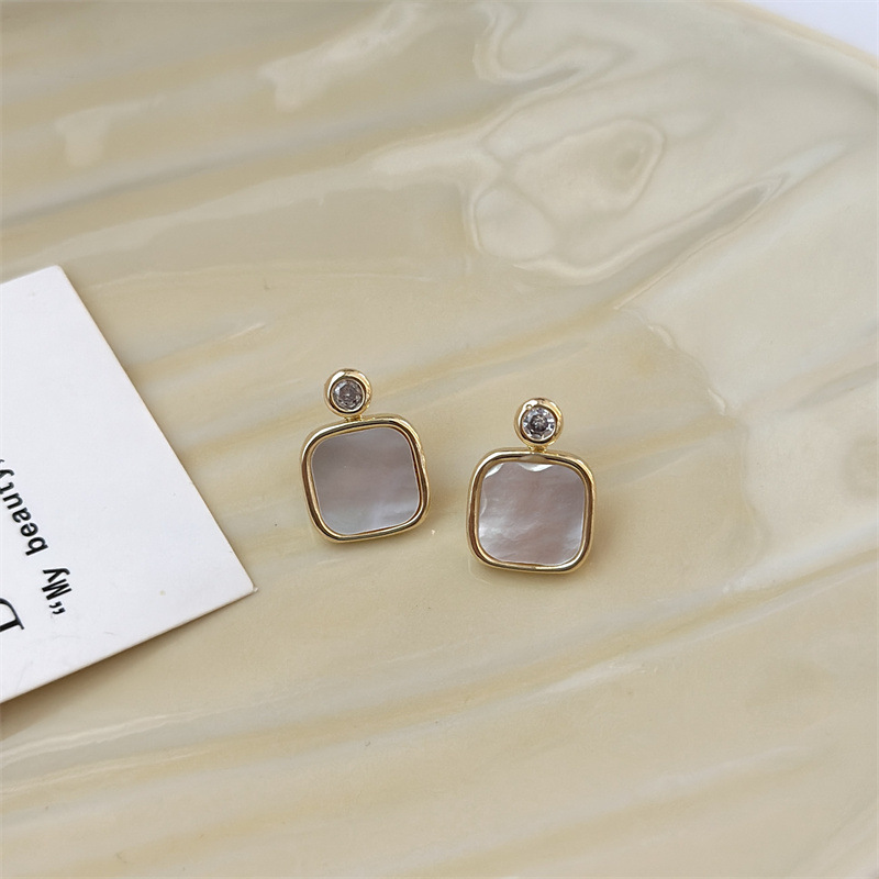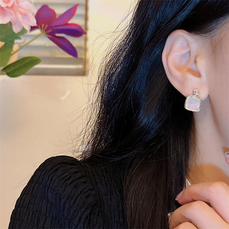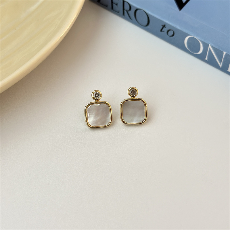 フランスの四角い貝殻のイヤリングは大衆のデザイン感があります。