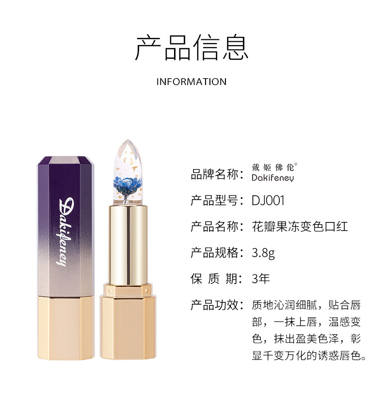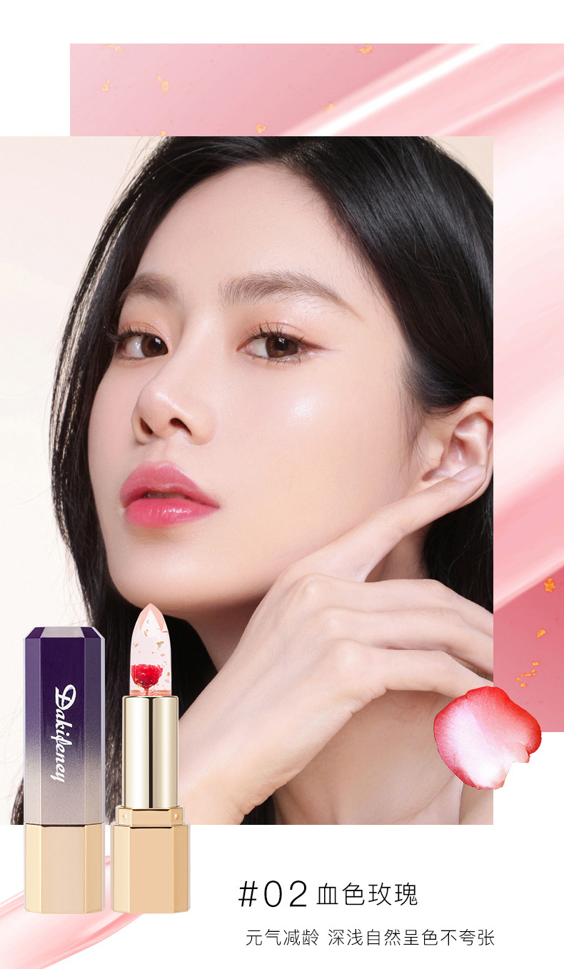 露選デイジーフォーレン花びらゼリー変色口紅、保湿、乾燥ひび割れ修復、色落ちしない、カップに付かない、温度変化
