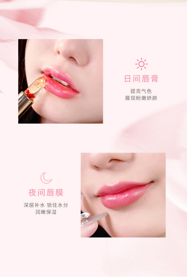 戴姫仏倫花びらゼリー変色口紅透明金箔保湿温変リップクリームは色落ちしない