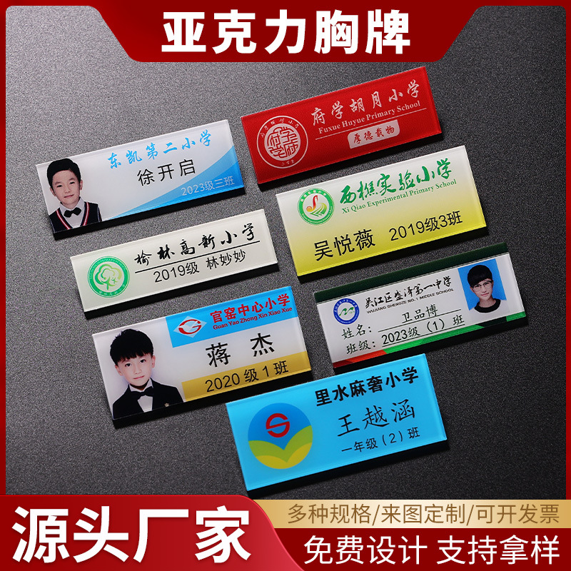 アクリル胸札カスタム学校札カスタム学生jk名札微笑顔札幼稚園仕事札カスタム