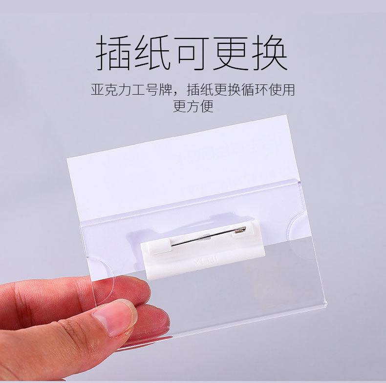 柏蘭帝アクリルピン胸牌安全工牌工号牌透明胸牌交換紙名札