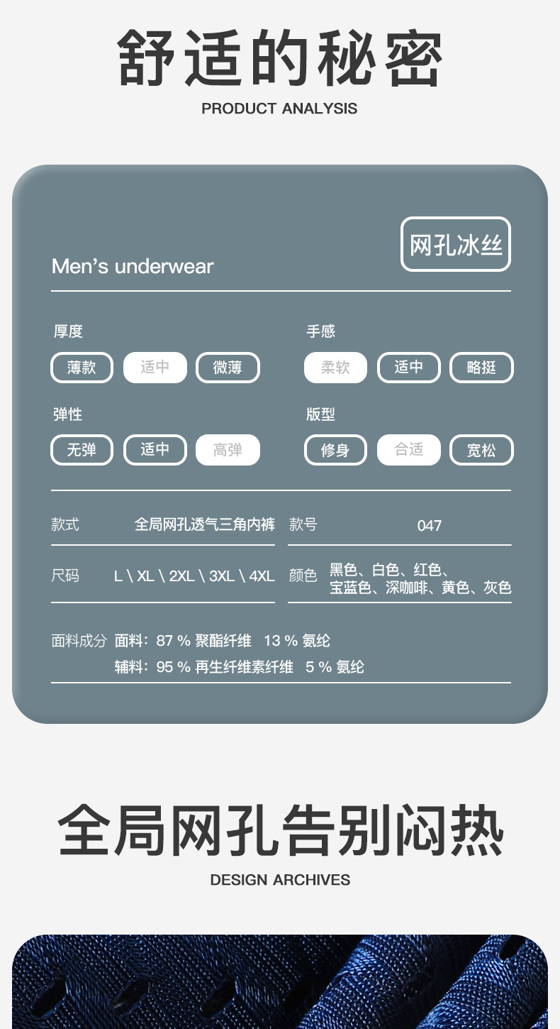 氷糸セクシーパンツ男低腰抗菌三角パンツ夏の薄いメッシュ通気パンツ頭男子パンツ