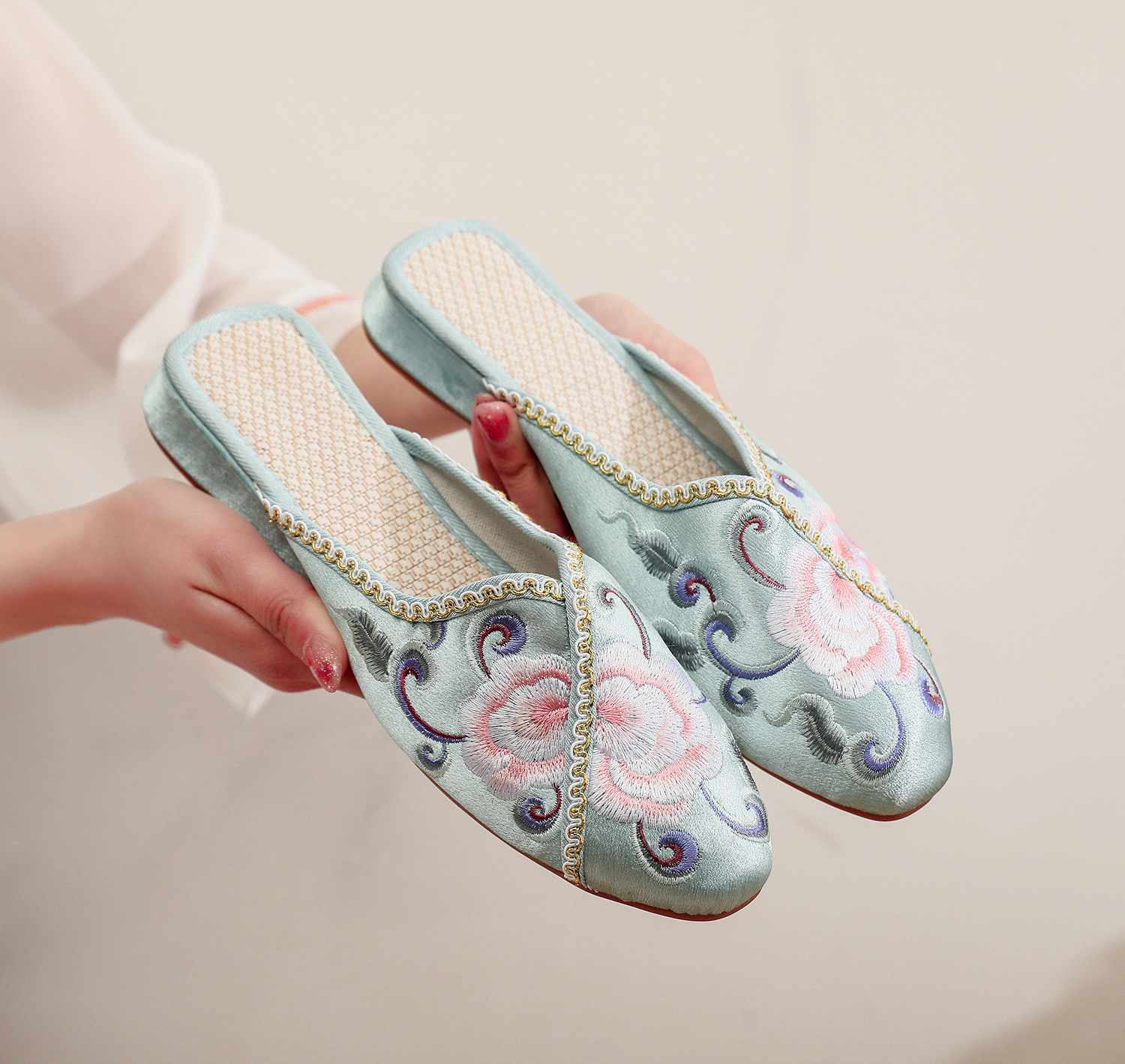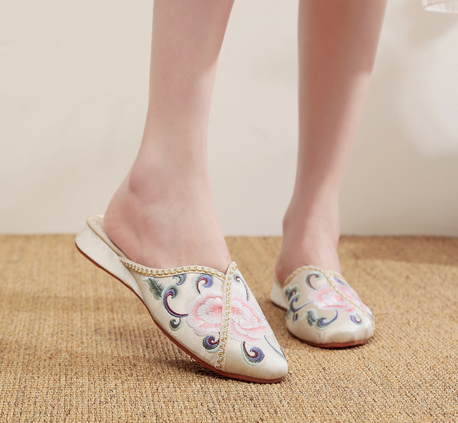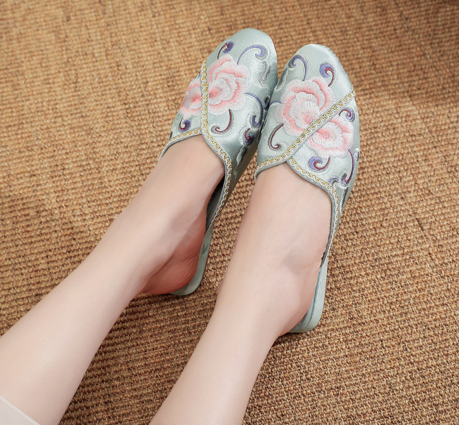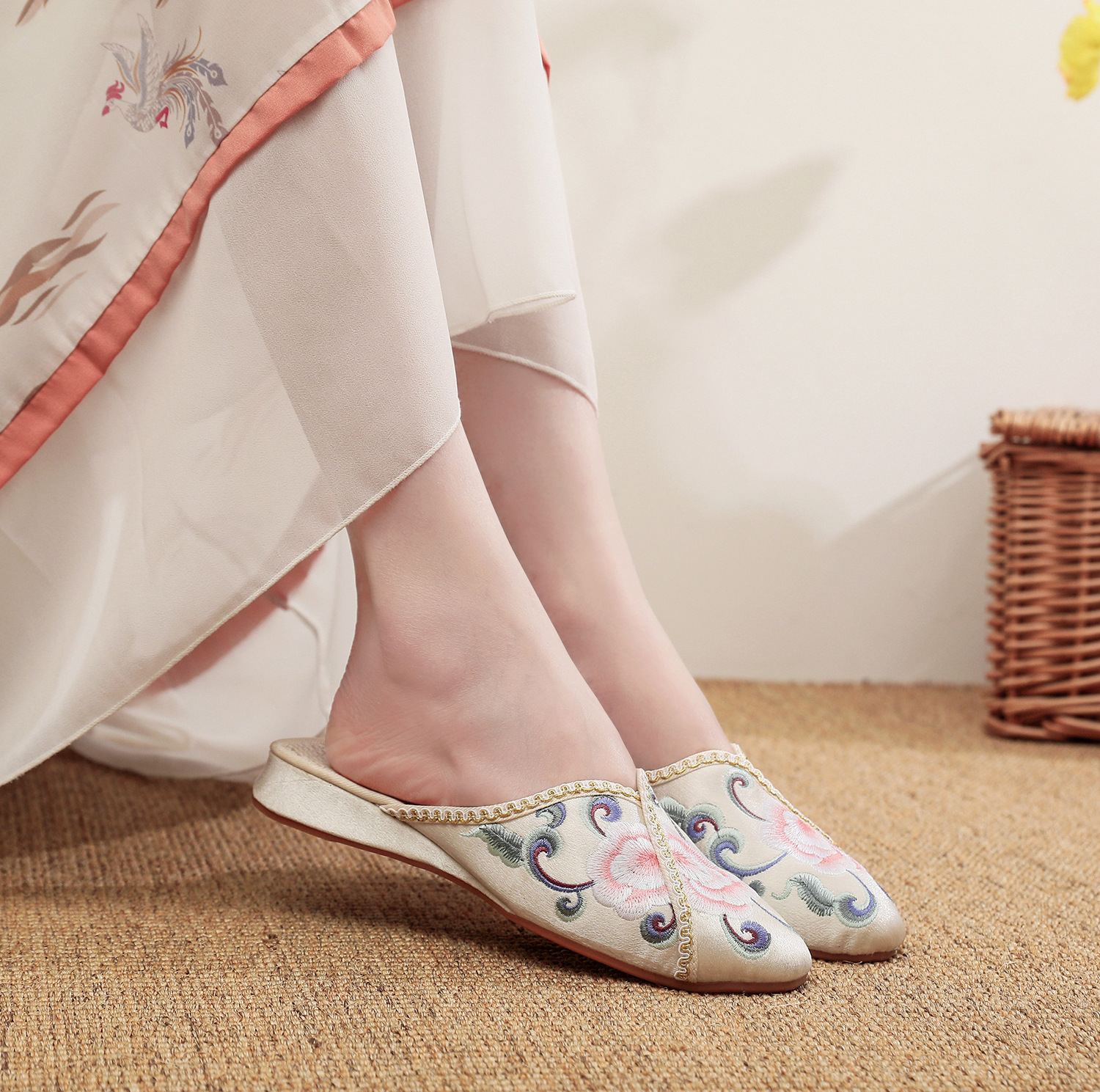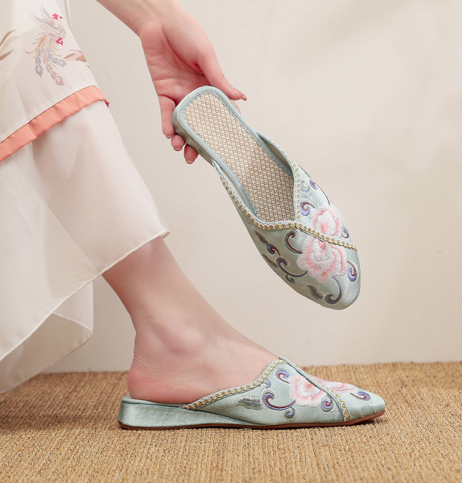 [華栄] 2024 夏の新アンティーク刺繍婦人靴屋内漢要素刺繍靴漢服靴女性のスリッパ