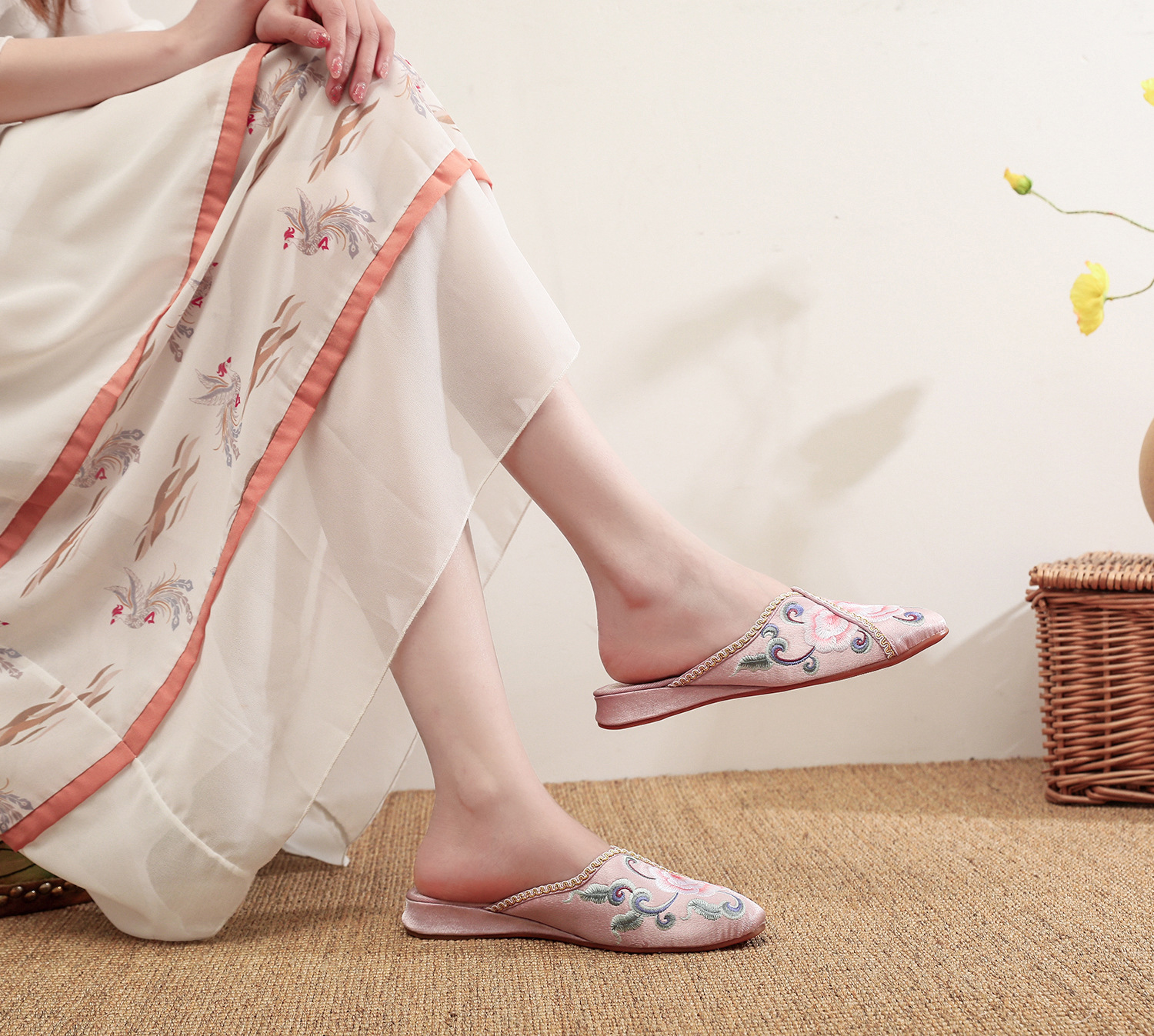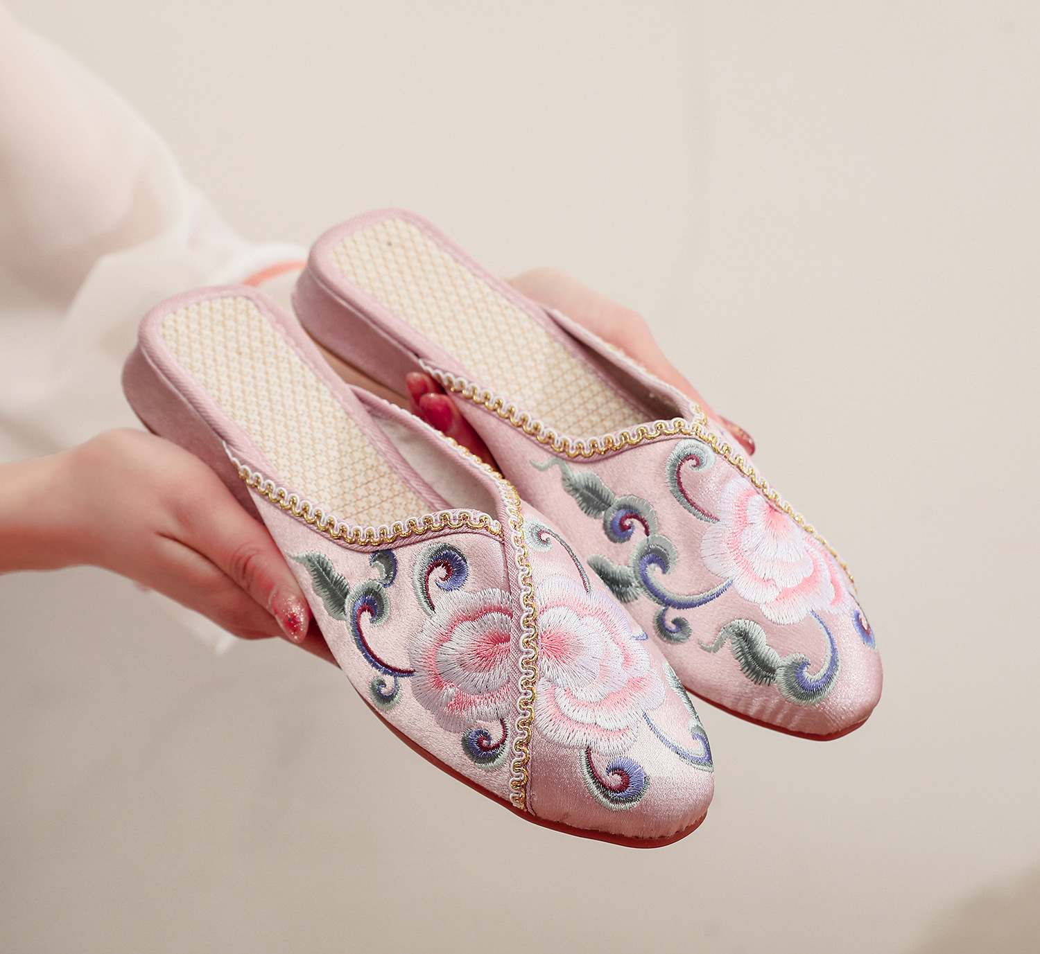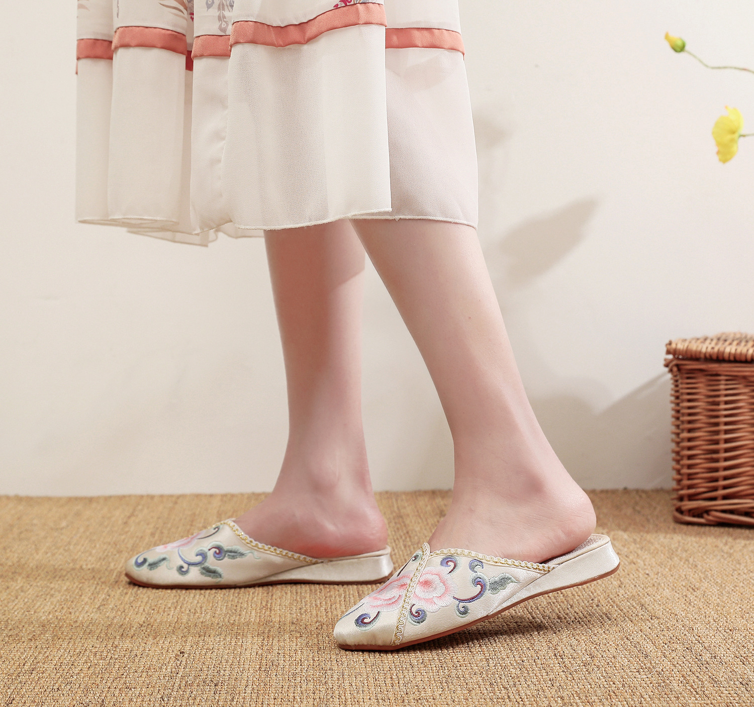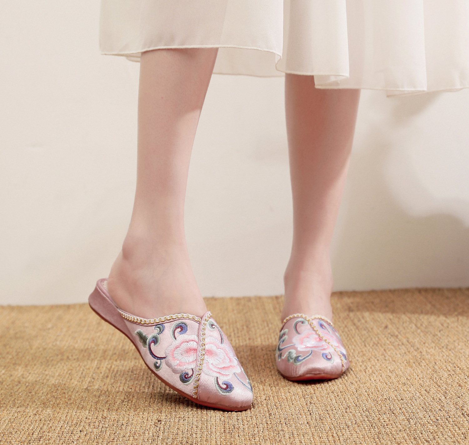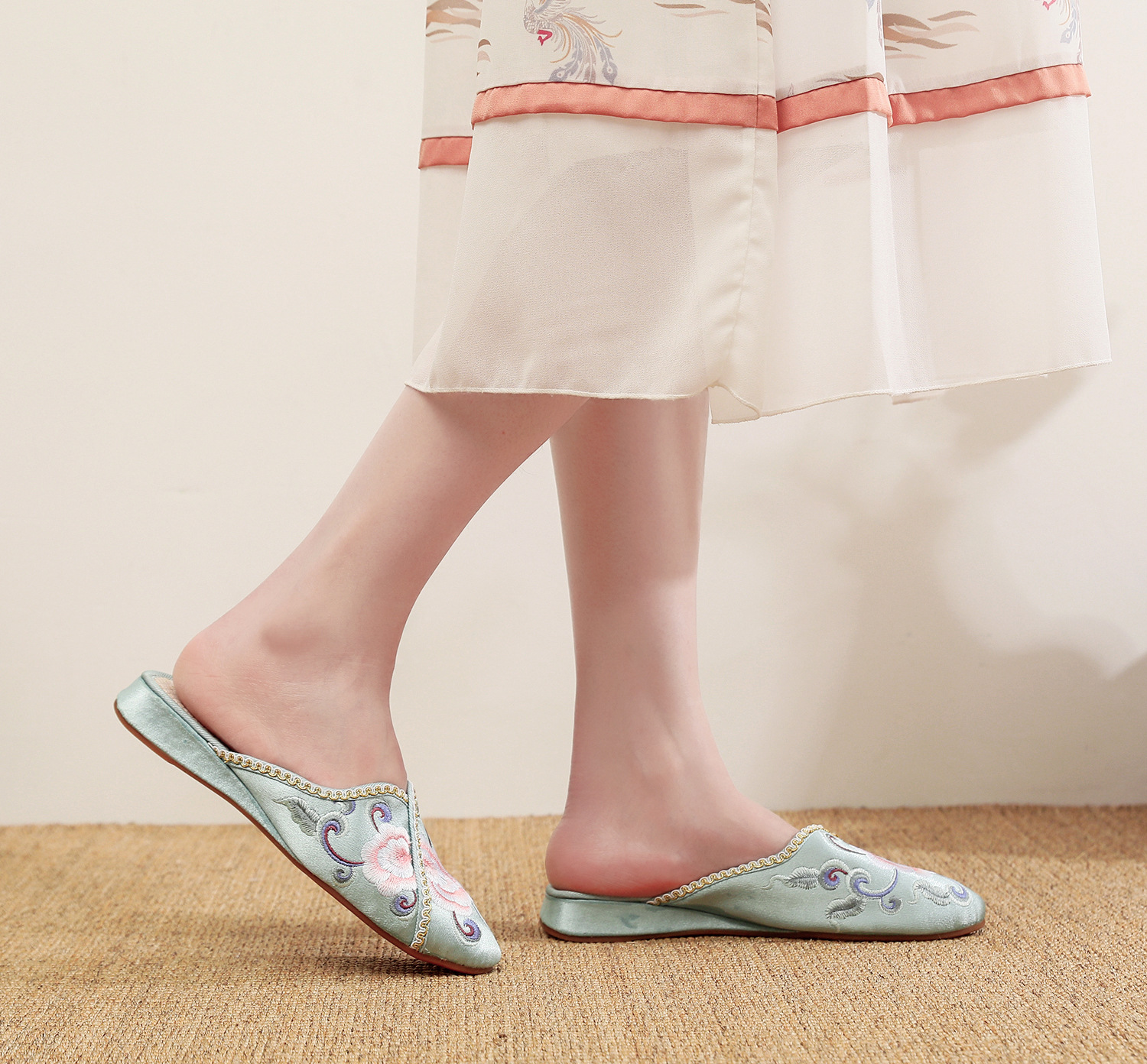 [華栄] 2024 夏の新アンティーク刺繍婦人靴屋内漢要素刺繍靴漢服靴女性のスリッパ