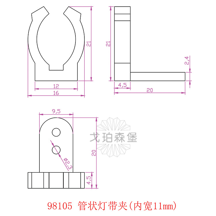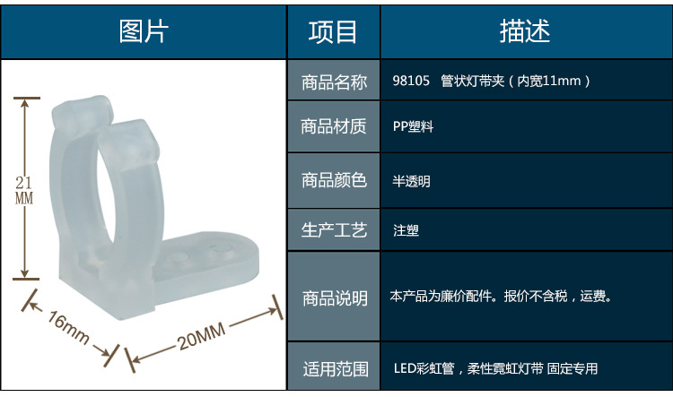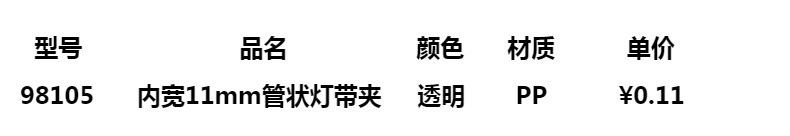 名称 98105管状ランプクリップ (内幅11mm)