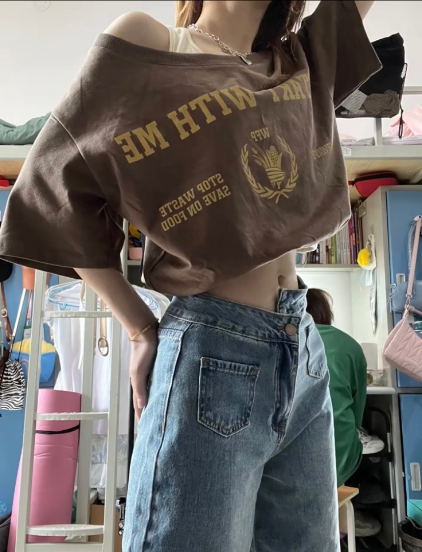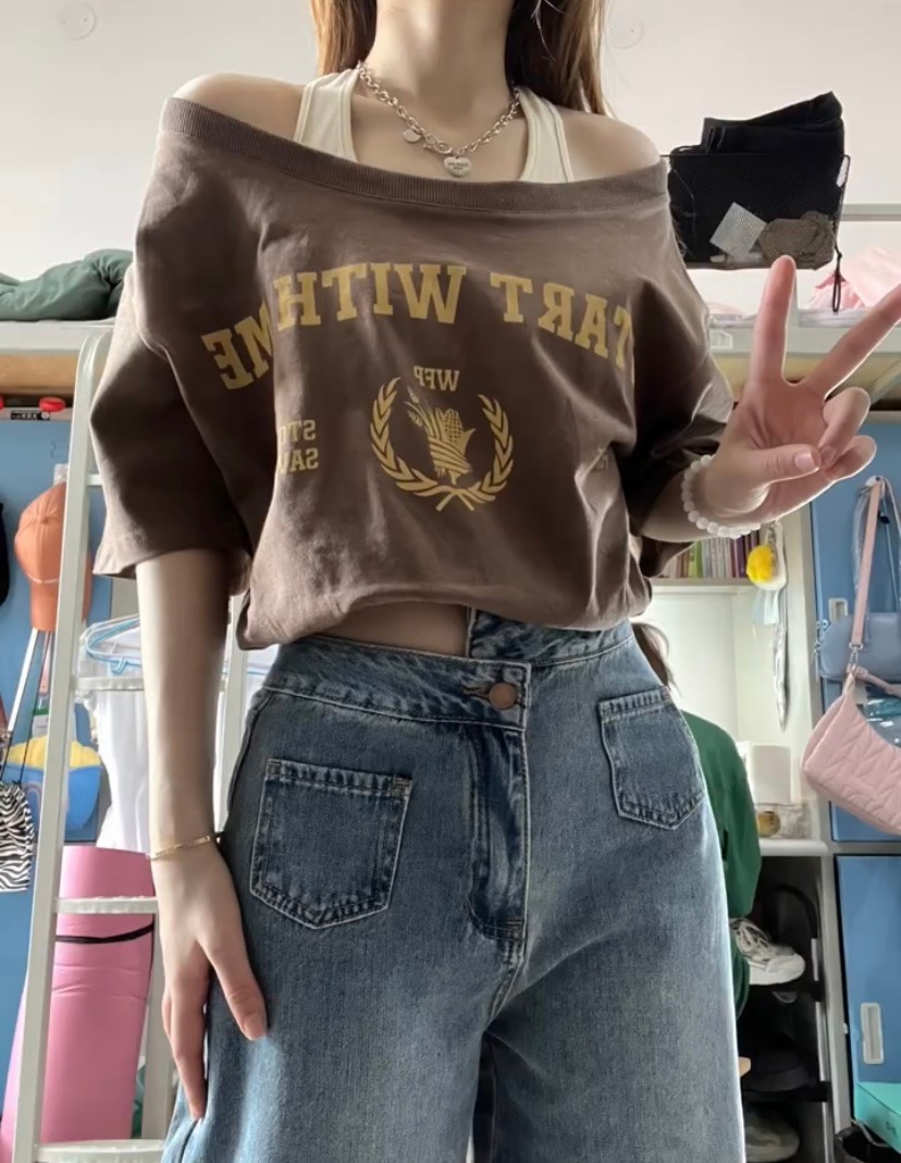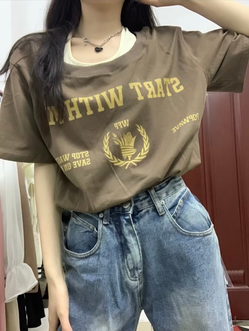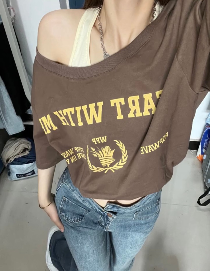 甘辛いデザイン感の短い上着の女性の夏の偽の2つの大衆の独特な露骨なセクシーなtシャツのプリントの学生