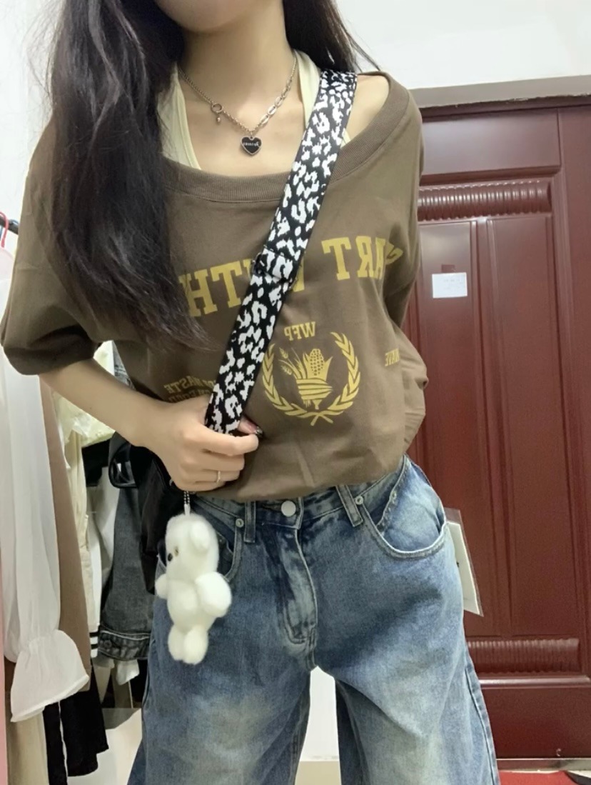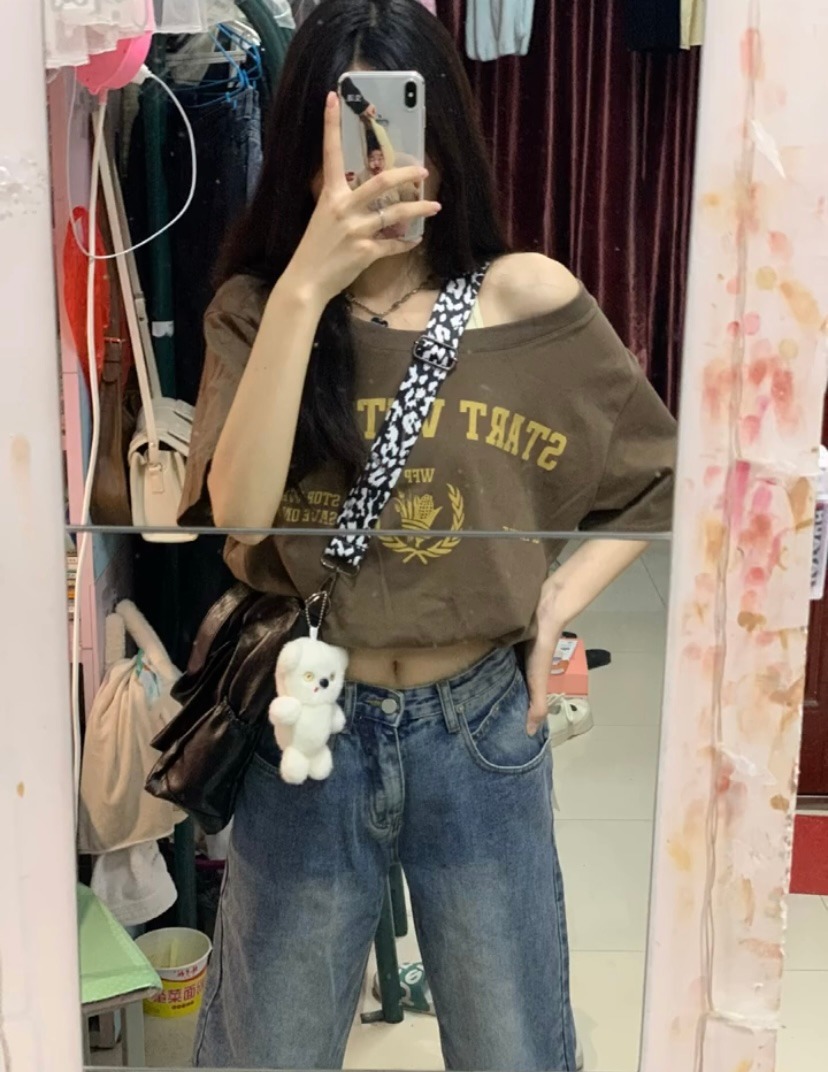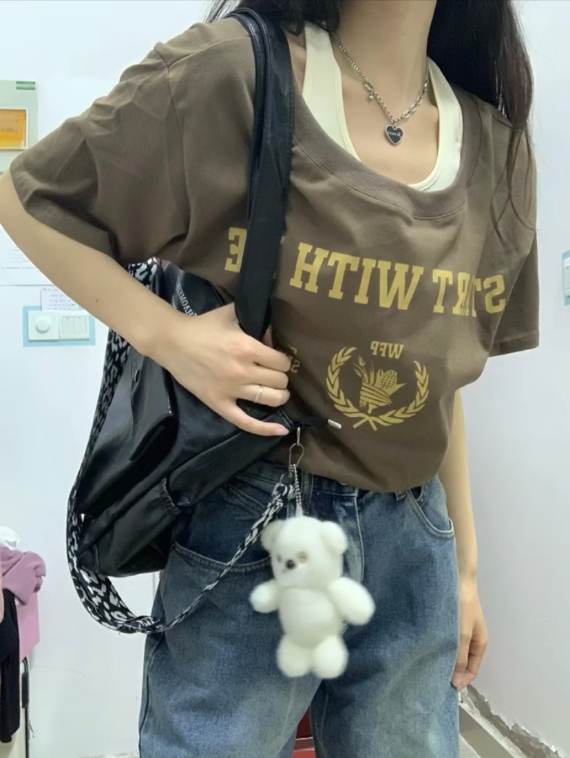 甘辛いデザイン感の短い上着の女性の夏の偽の2つの大衆の独特な露骨なセクシーなtシャツのプリントの学生