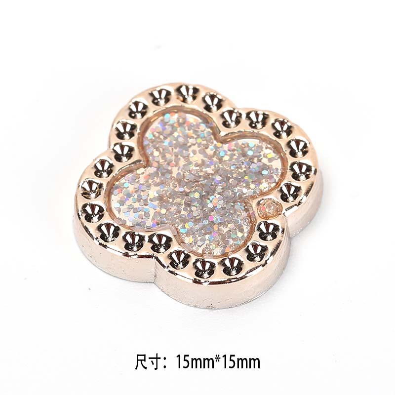 プラスチック四穴ボタンヘアクリップの部品はメッキ桃の髪飾りの部品です。