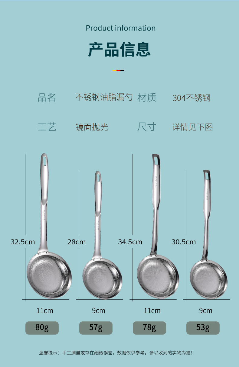 304泡立てスプーンステンレス油漏れスプーン家庭用フィルタースプーン油漏れスプーン台所油抜きスプーン油抜き神器