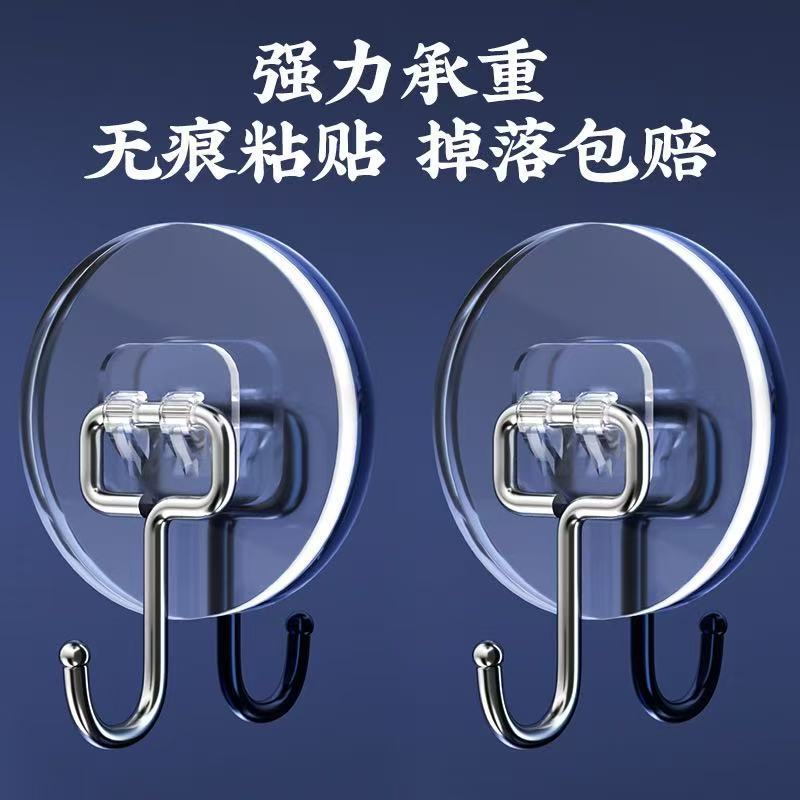 圆形挂钩强力粘胶厨房墙壁挂墙上钩子免打孔宿舍挂勾透明无痕粘钩