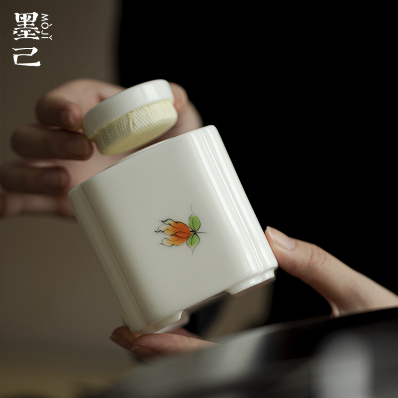 墨己手描き仏手玉泥白磁茶葉缶工夫茶器家庭用茶倉陶磁器密封缶貯蔵タンク