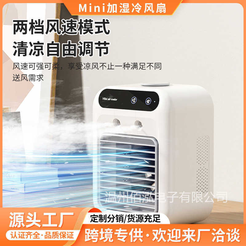 跨境迷你空调扇冷风机家用办公加湿喷雾桌面小风扇宿舍两用电扇