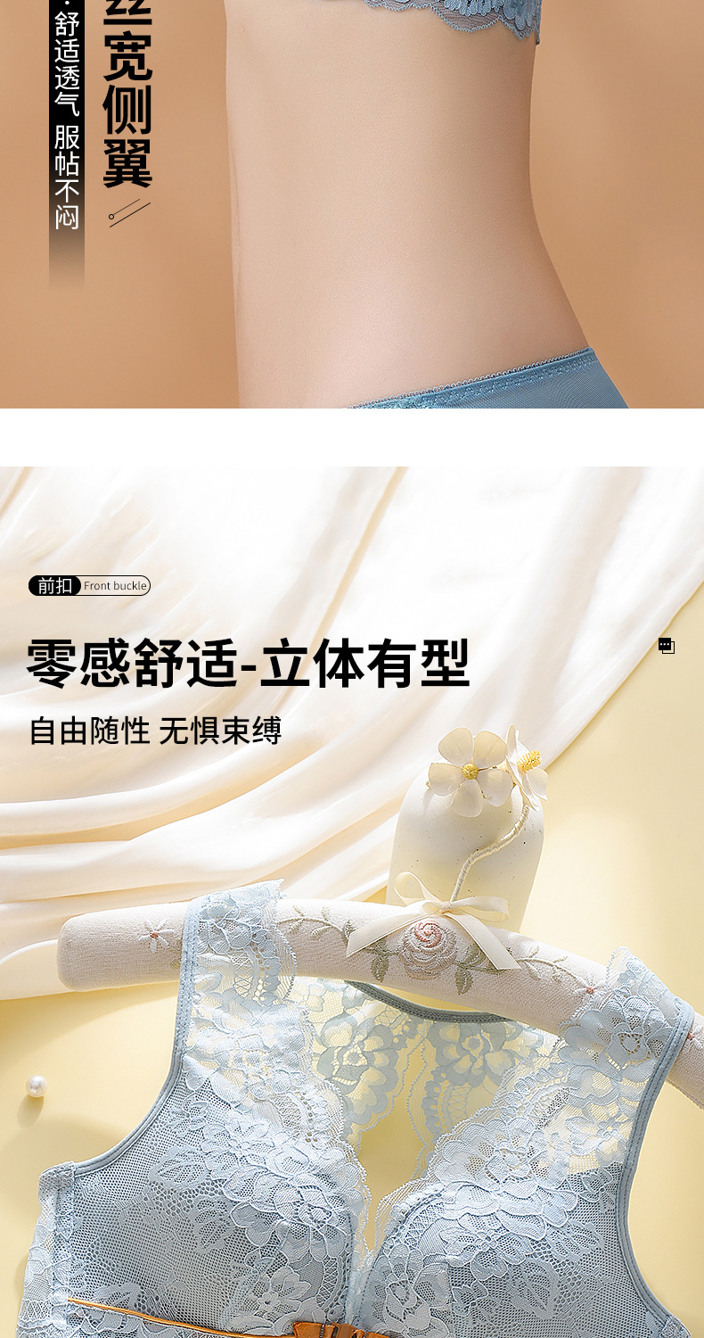 显大前扣内衣女小胸聚拢收副乳防下垂调整型蕾丝无钢圈文胸罩